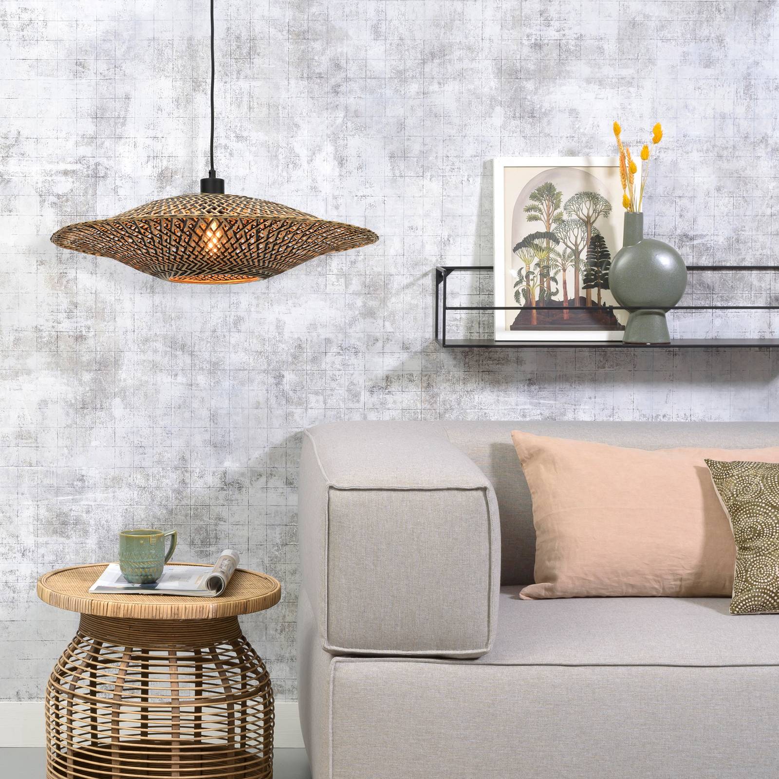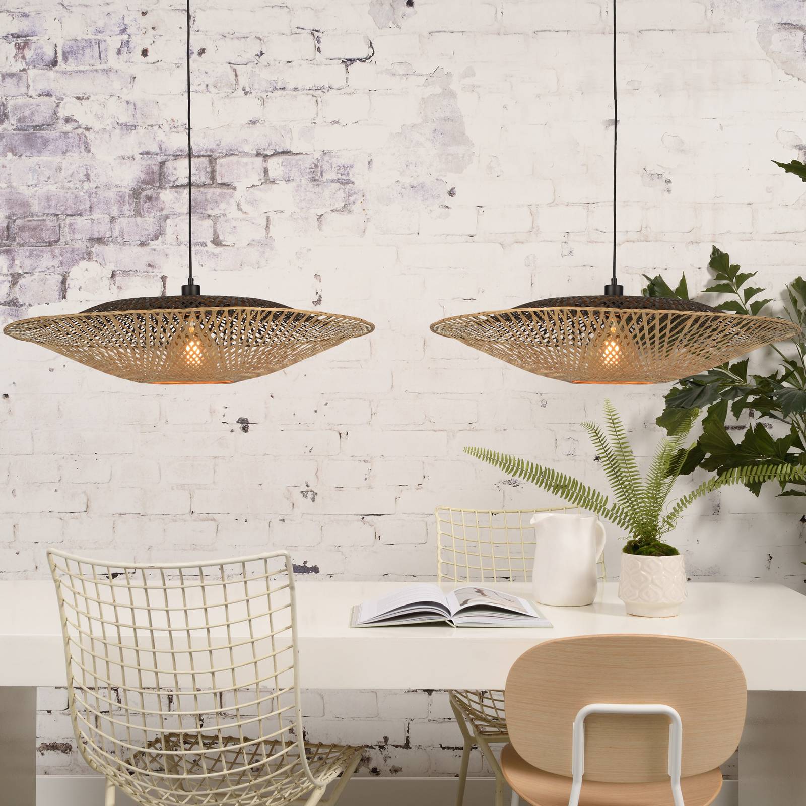 Good & Mojo GOOD MOJO Kalimantan závěsná lampa horizontální Ø87cm, Obývací pokoj / jídelna, Bambus, železo, textil, E27, 40W, K: 21cm