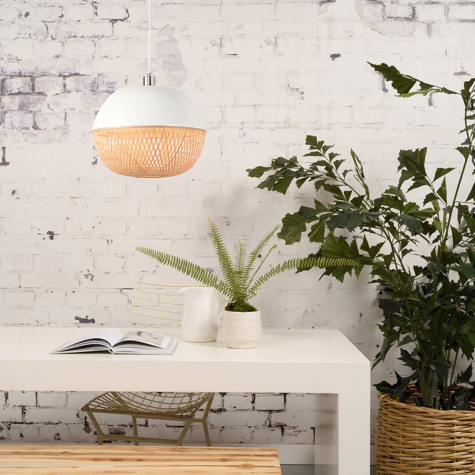 Good & Mojo GOOD MOJO Mekong stropní světlo, bílá/přírodní, Obývací pokoj / jídelna, bambus, železo, E27, 60W, K: 22cm
