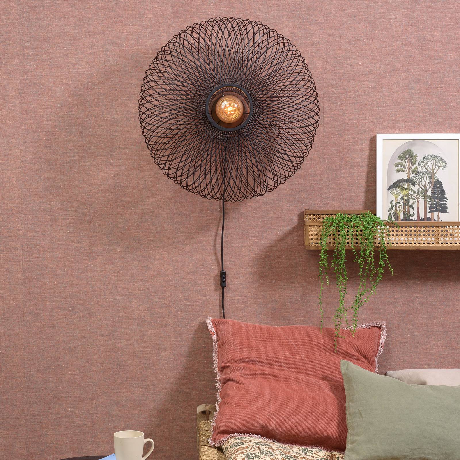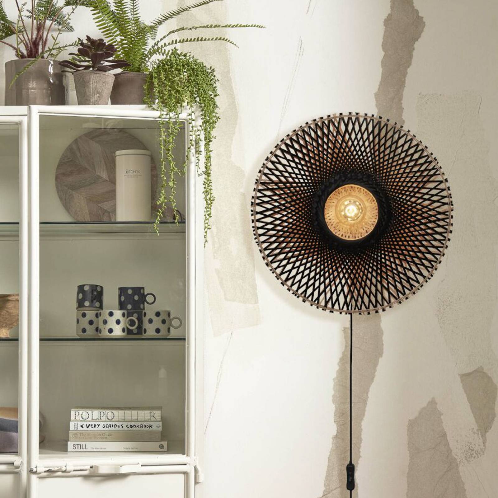 Good & Mojo GOOD MOJO Kalimantan stěna, černá/přírodní, Ø 60cm, Obývací pokoj / jídelna, bambus, železo, textil, E27, 60W