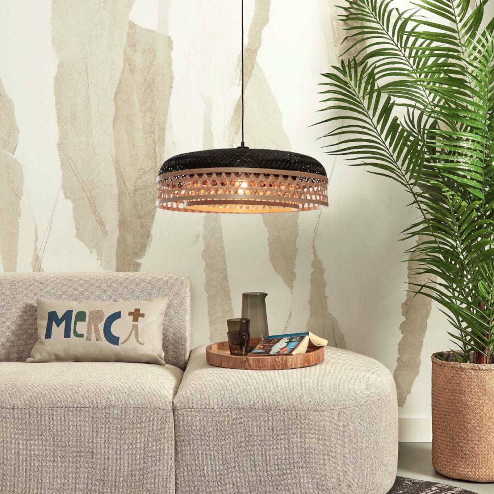 Good & Mojo GOOD MOJO Ubud závěsné, Ø 60cm přírodní/černá, Obývací pokoj / jídelna, bambus, železo, E27, 40W, K: 18cm