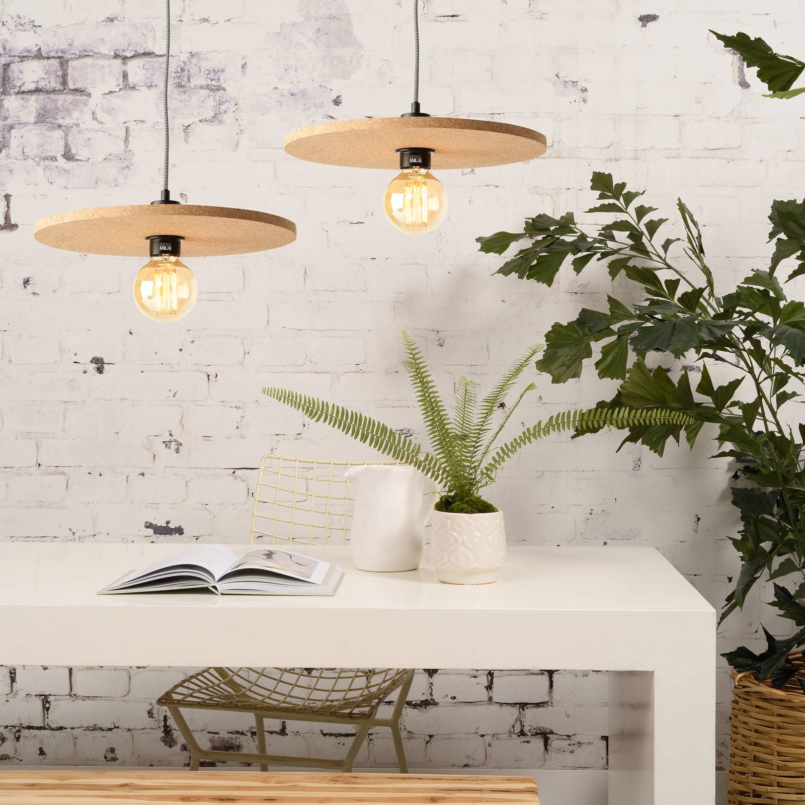 Good & Mojo GOOD MOJO Algarve závěsné světlo, přírodní, Obývací pokoj / jídelna, korek, železo, tkanina, E27, 40W, K: 1.5cm