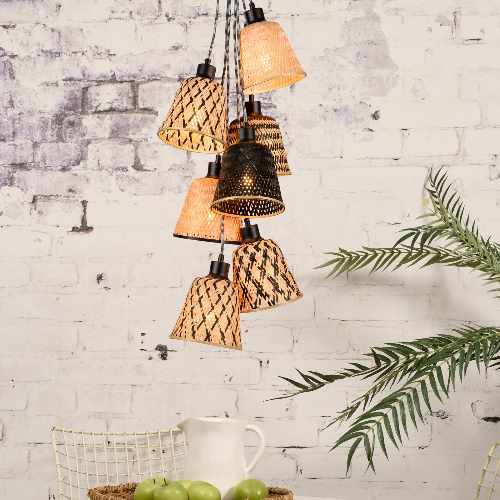 Good & Mojo GOOD MOJO Kalimantan závěsné světlo sedm zdrojů, Obývací pokoj / jídelna, bambus, železo, textil, E27, 40W