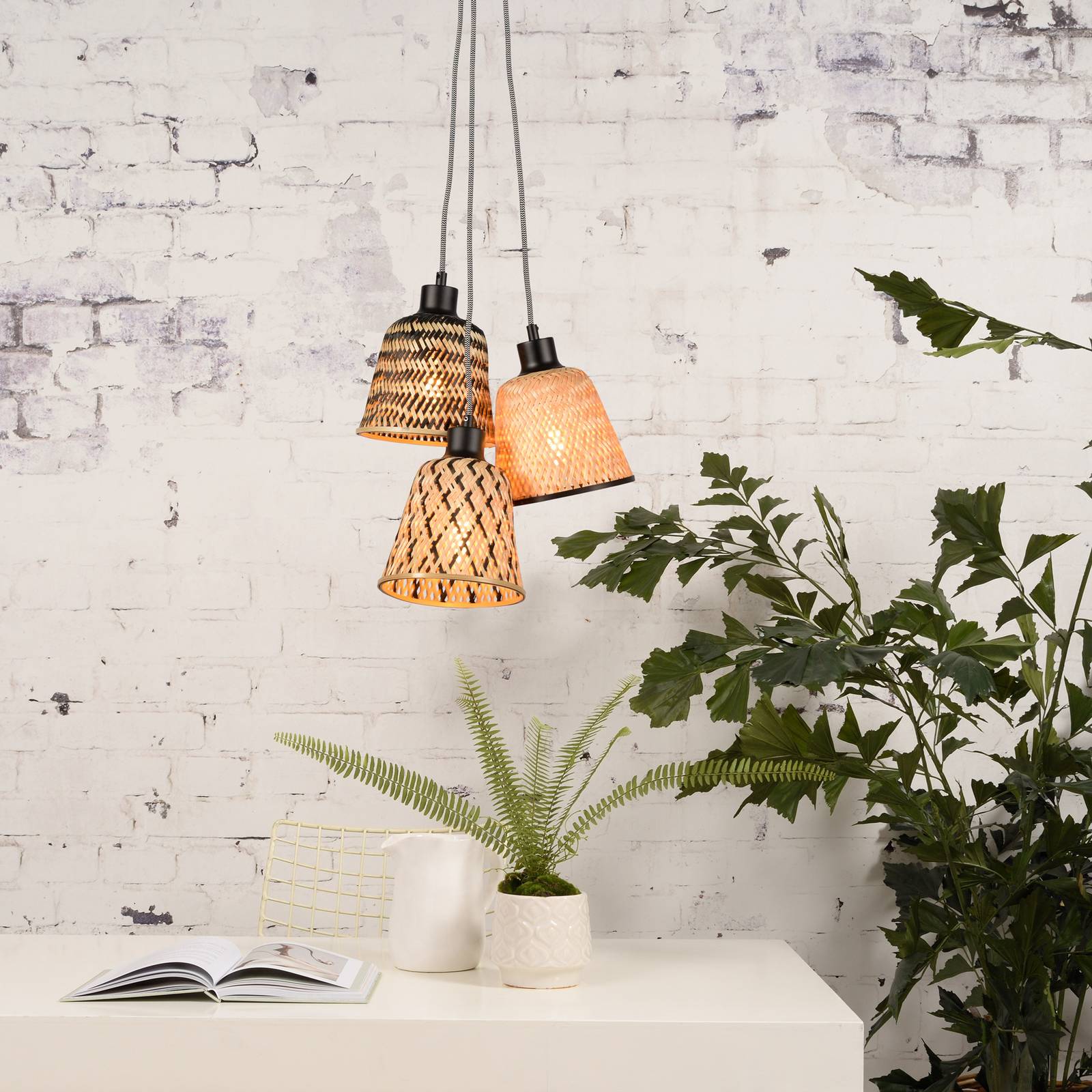 Good & Mojo GOOD MOJO Kalimantan závěsné světlo tři zdroje, Obývací pokoj / jídelna, bambus, železo, textil, E27, 40W