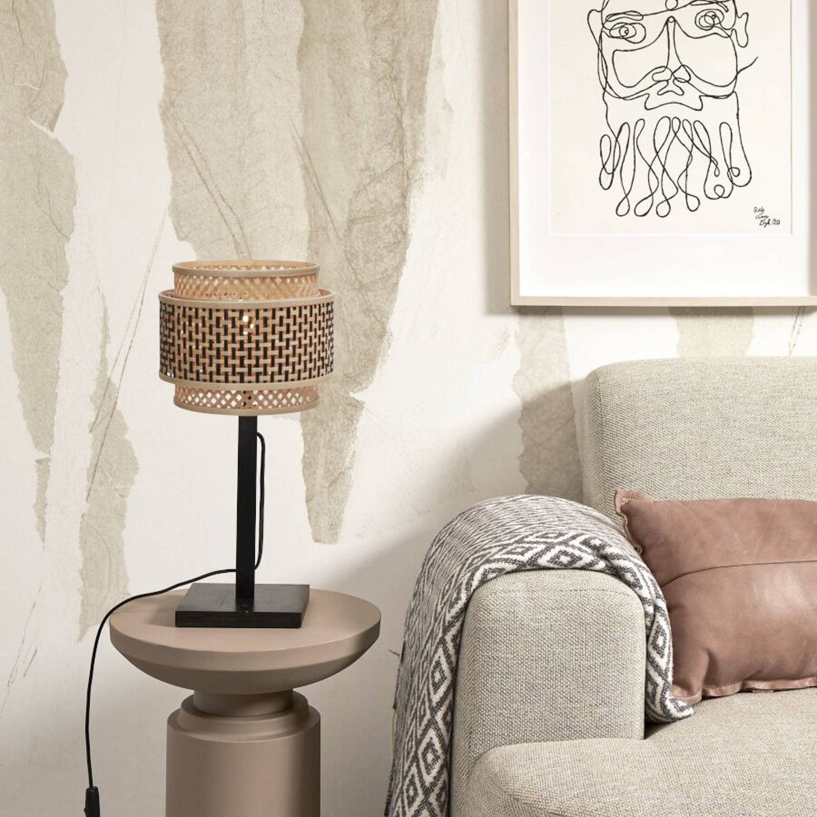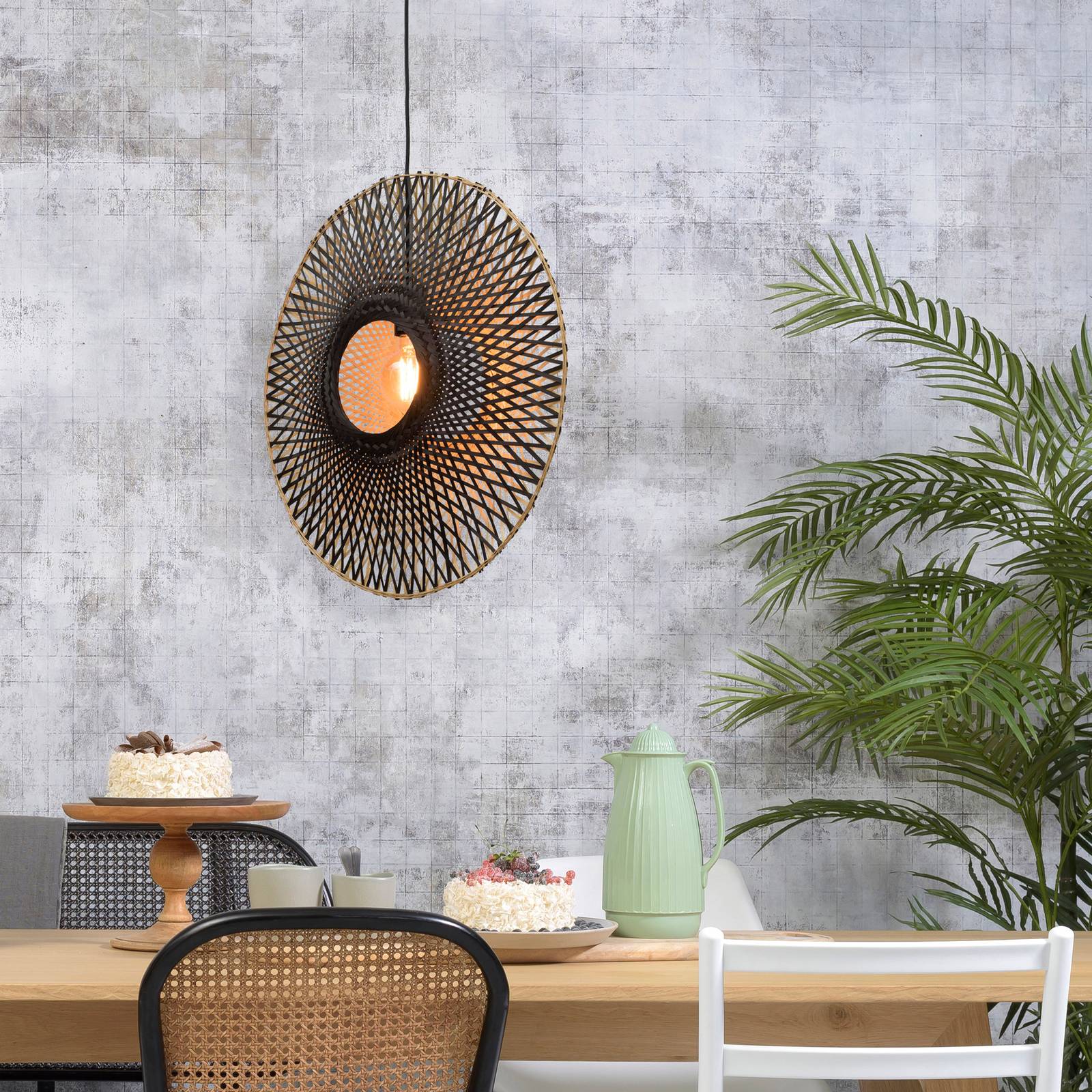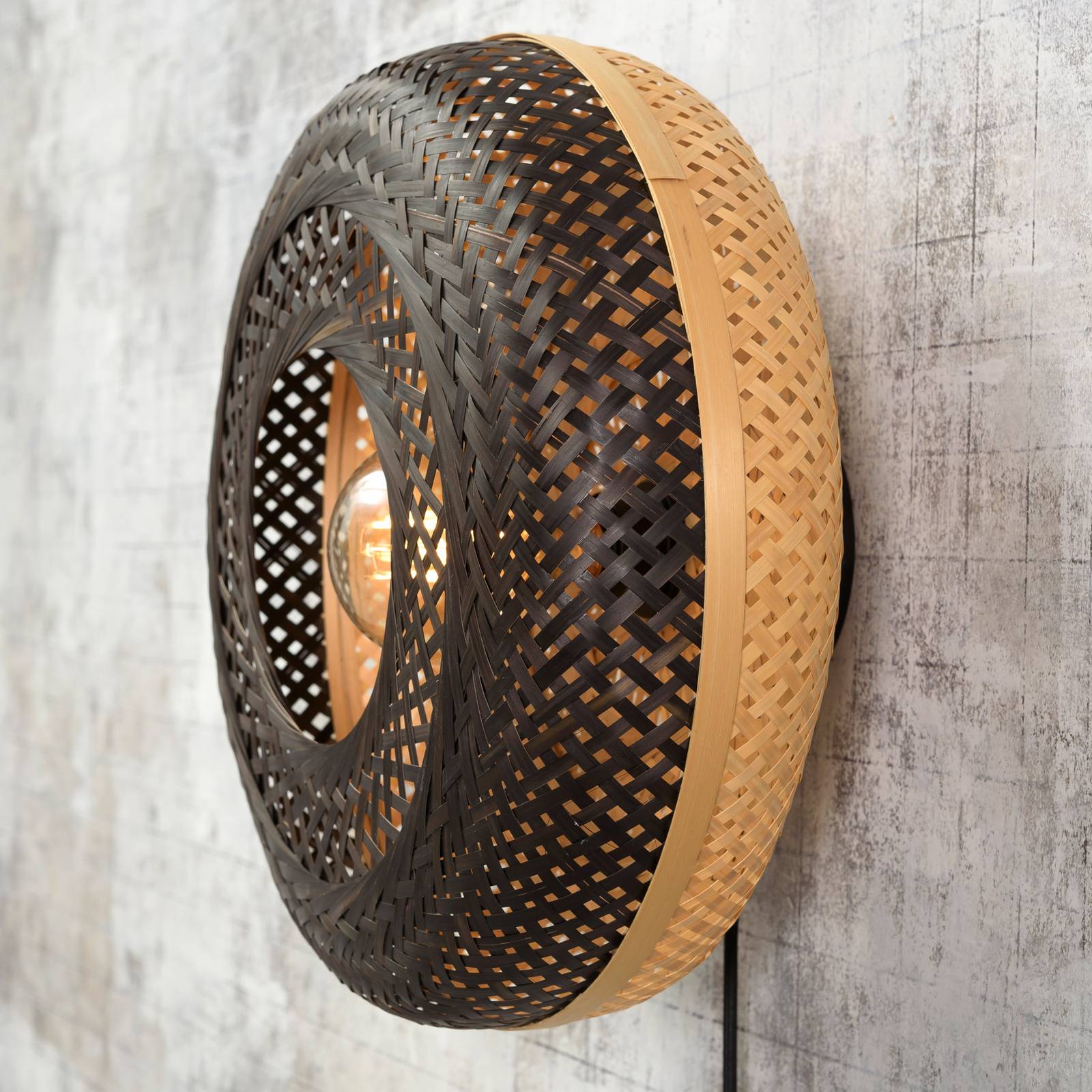 Good & Mojo GOOD MOJO Kalimantan stěna, přírodní/černá, Ø 44cm, Obývací pokoj / jídelna, Bambus, železo, textil, E27, 60W