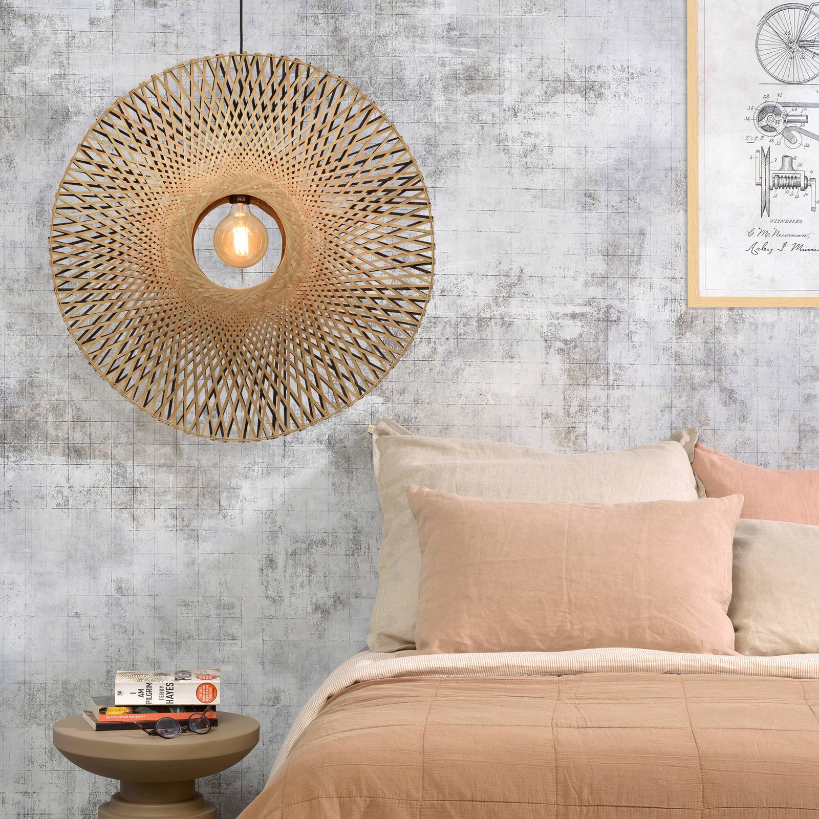Good & Mojo GOOD MOJO Madagascar závěsné světlo, přírodní, Obývací pokoj / jídelna, bambus, železo, textil, E27, 60W, K: 50cm
