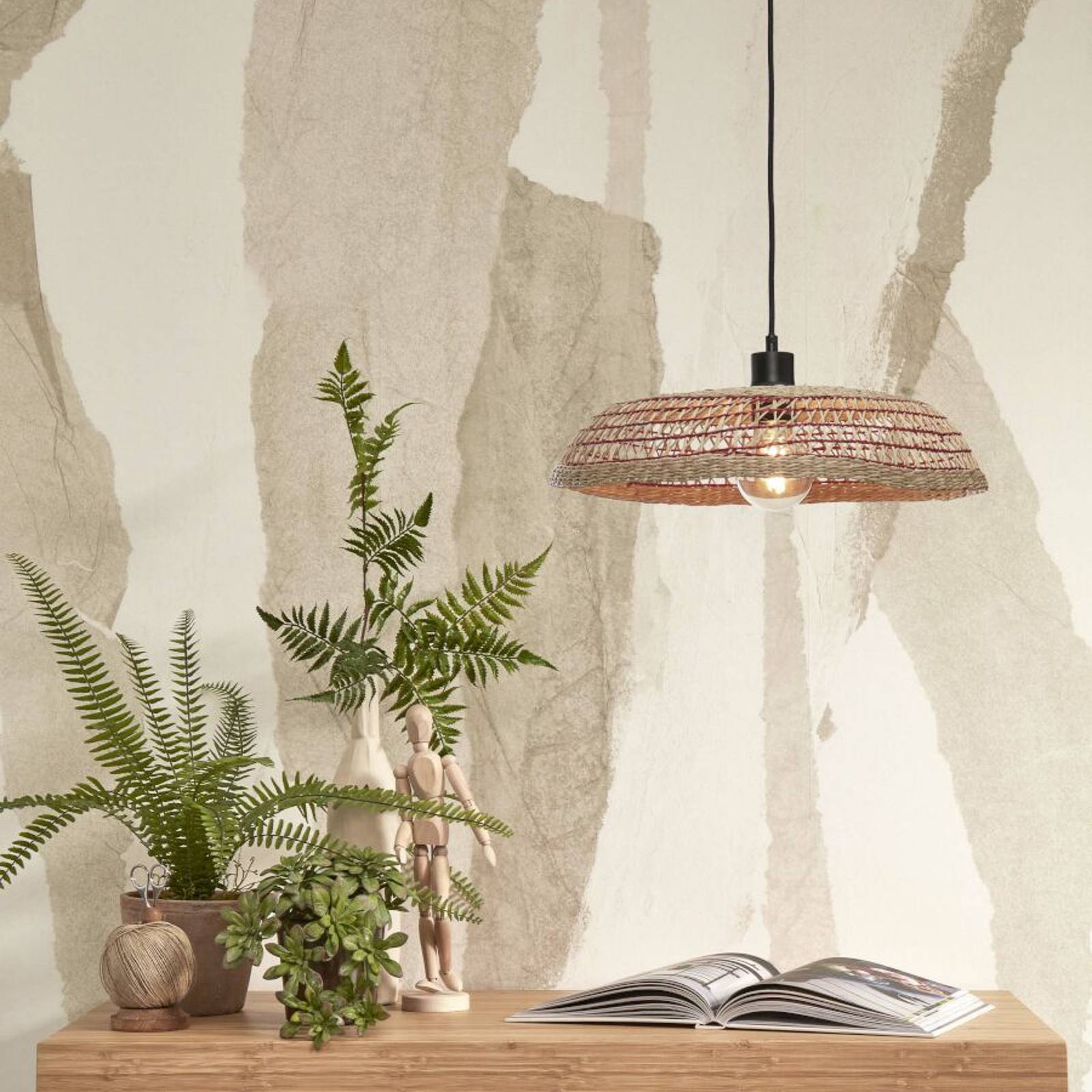 Good & Mojo GOOD MOJO Pantanal závěsné, přírodní/červená, Obývací pokoj / jídelna, železo, mořská tráva, E27, 40W, K: 9cm