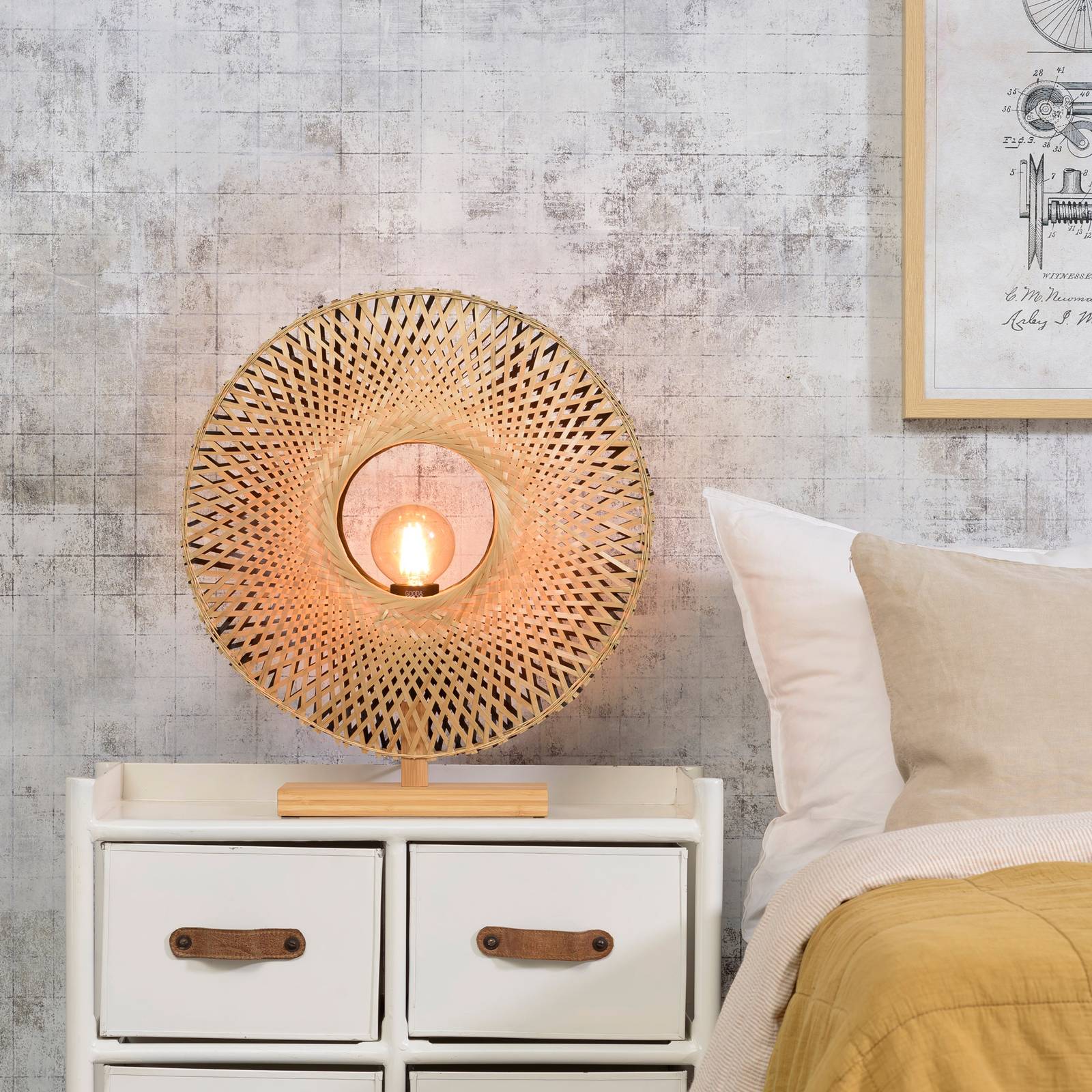 Good & Mojo Stolní lampa GOOD MOJO Kalimantan, Ø 60 cm, Obývací pokoj / jídelna, Bambus, textil, E27, 40W, L: 15 cm, K: 67cm