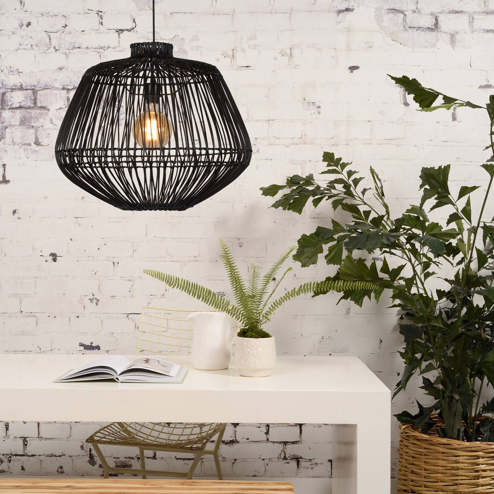 Good & Mojo GOOD MOJO Madagascar závěsné světlo, černá, Obývací pokoj / jídelna, bambus, železo, textil, E27, 60W, K: 50cm
