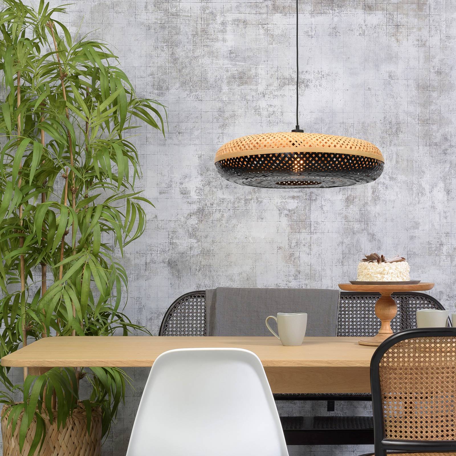 Good & Mojo GOOD MOJO Palawan závěsná lampa přírodní/černá Ø60cm, Obývací pokoj / jídelna, Bambus, železo, textil, E27, 40W, K: 15cm