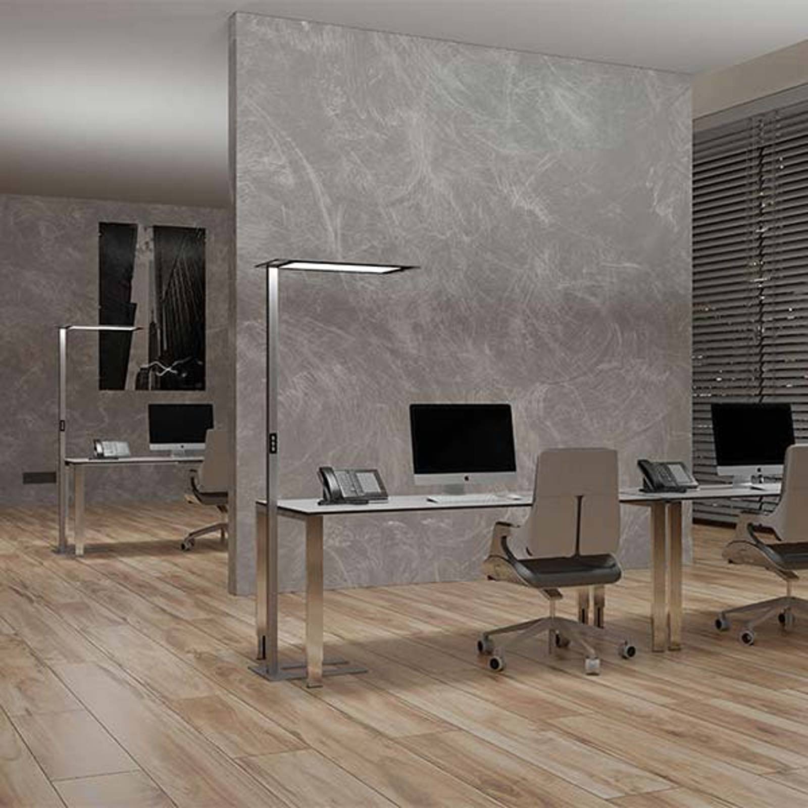 GRIMMEISEN Onyxx Linea Pro závěs beton/stříbrná, Pracovna / kancelář, minerální látka, ocelový plech, hliník eloxovaný, 45W, P: 122.6 cm, L: 1.8 cm, K: 6cm