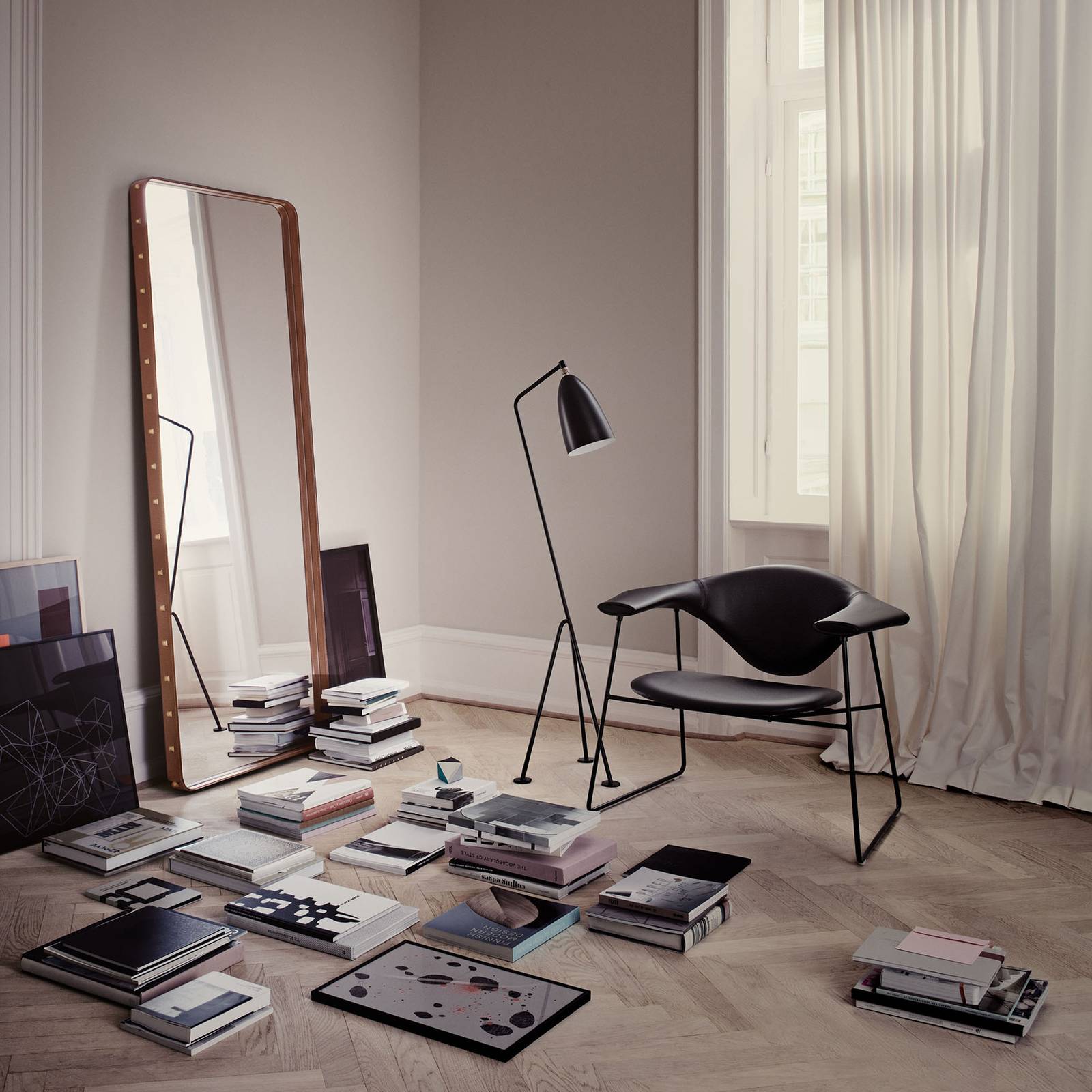 GUBI Stemlite stojací lampa, šedá, 110 cm, Obývací pokoj / jídelna, kov, sklo, E27, 75W, K: 110cm