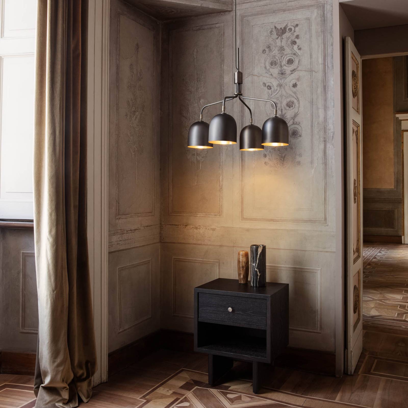 GUBI Lustr Howard 4 světla Ø 66 cm, bronzová barva, Obývací pokoj / jídelna, Kov, E14, 40W, K: 16.4cm