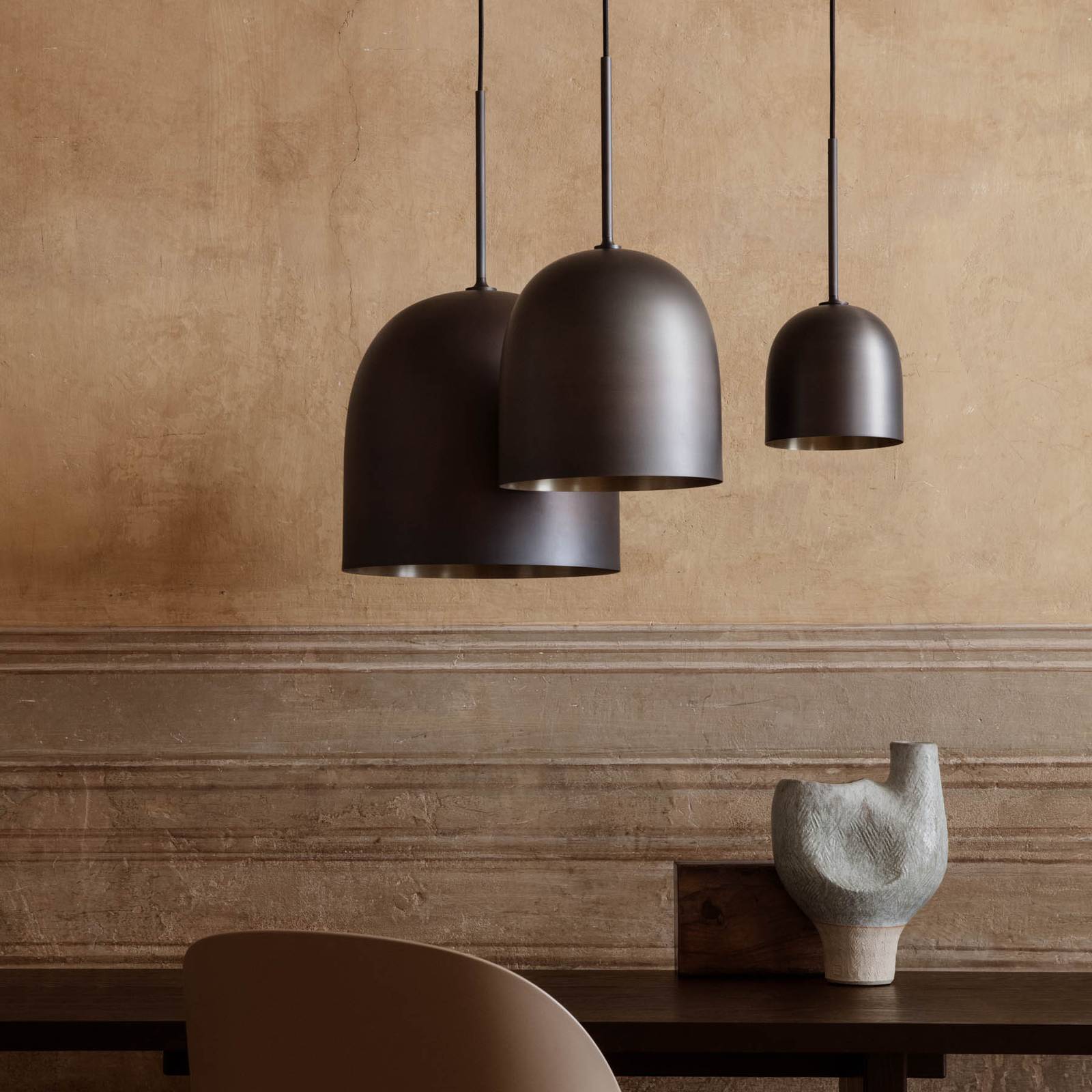 GUBI Závěsné svítidlo Howard Ø 16 cm, bronzová barva, Obývací pokoj / jídelna, Kov, E14, 40W, K: 16.4cm
