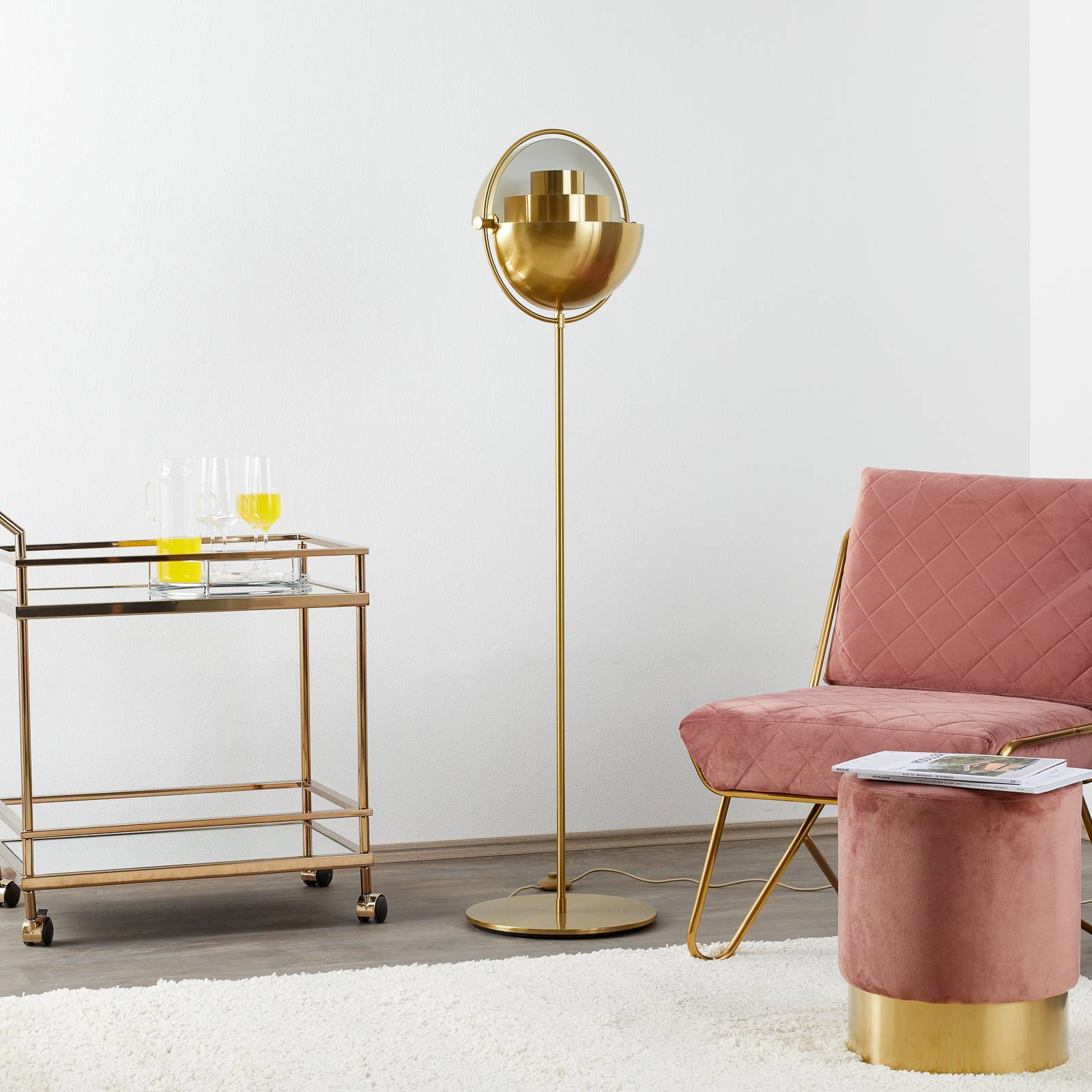 GUBI Stojací lampa Multi-Lite, výška 148 cm, mosaz/mosaz, Obývací pokoj / jídelna, Ocel, E27, 10W, K: 148cm