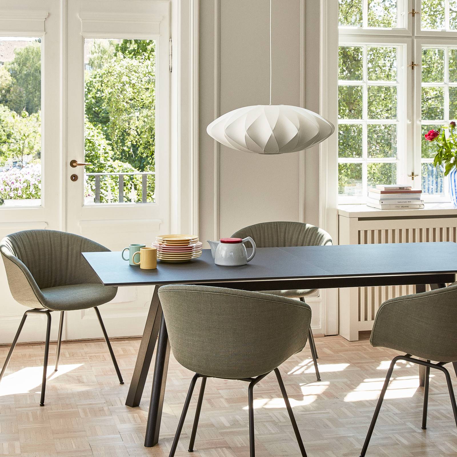 HAY Common Table stínidlo Oblong základna černá, Obývací pokoj / jídelna, ocel, rýžový papír, E27, 13W, K: 75cm