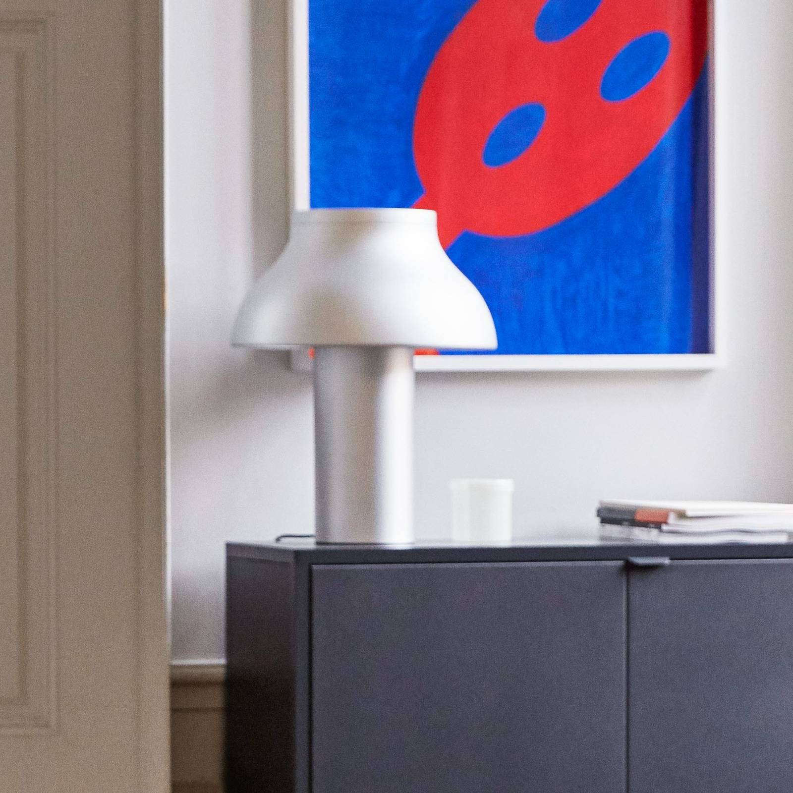 HAY Apollo stolní lampa ze skla, bílá, Obývací pokoj / jídelna, opálové sklo foukané, korek, plast, E27, 15W, K: 38cm