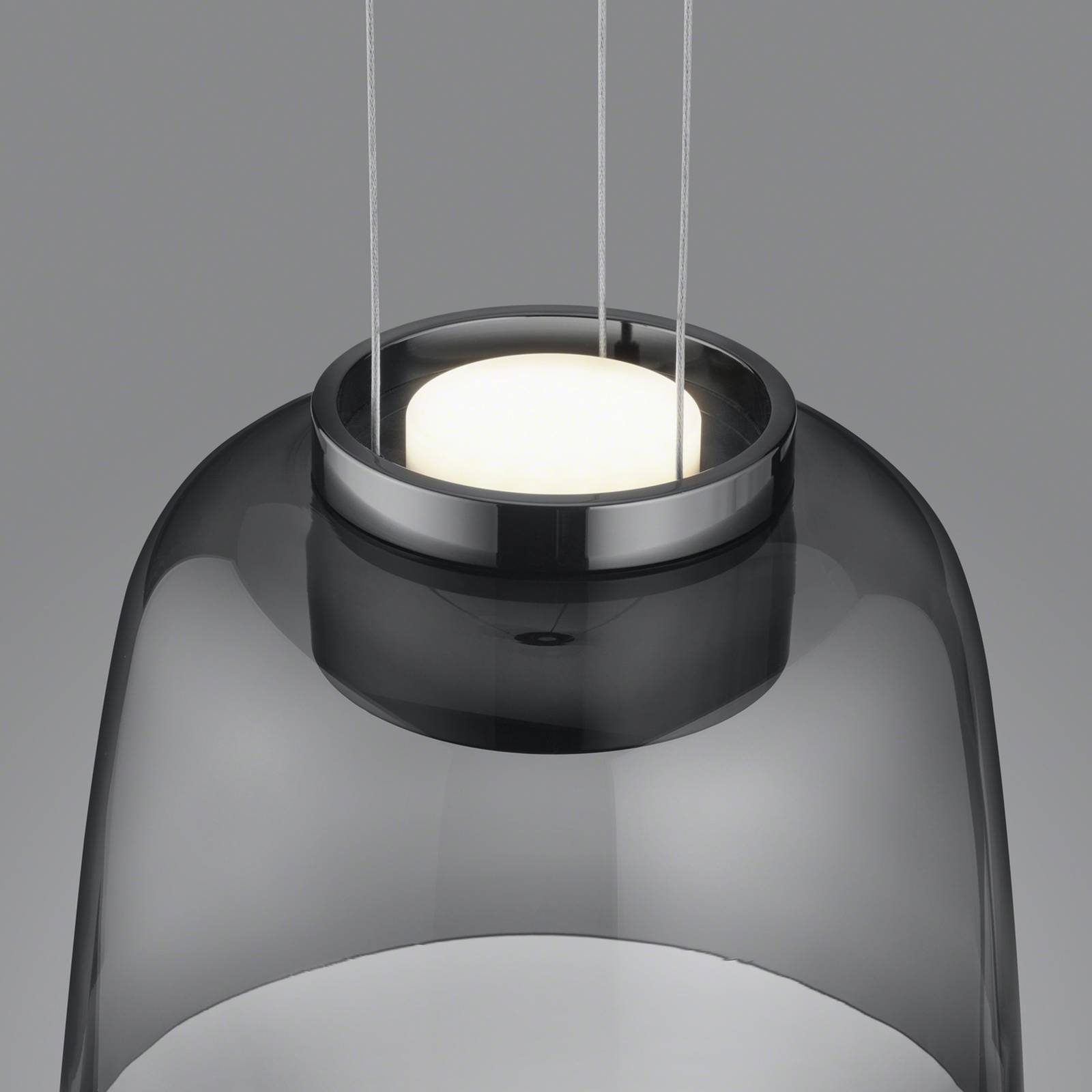 Helestra Závěsné světlo Gara se třemi s kouřovými stínidly, Obývací pokoj / jídelna, sklo, hliník, E27, 60W, P: 130 cm, L: 13.5 cm, K: 31cm