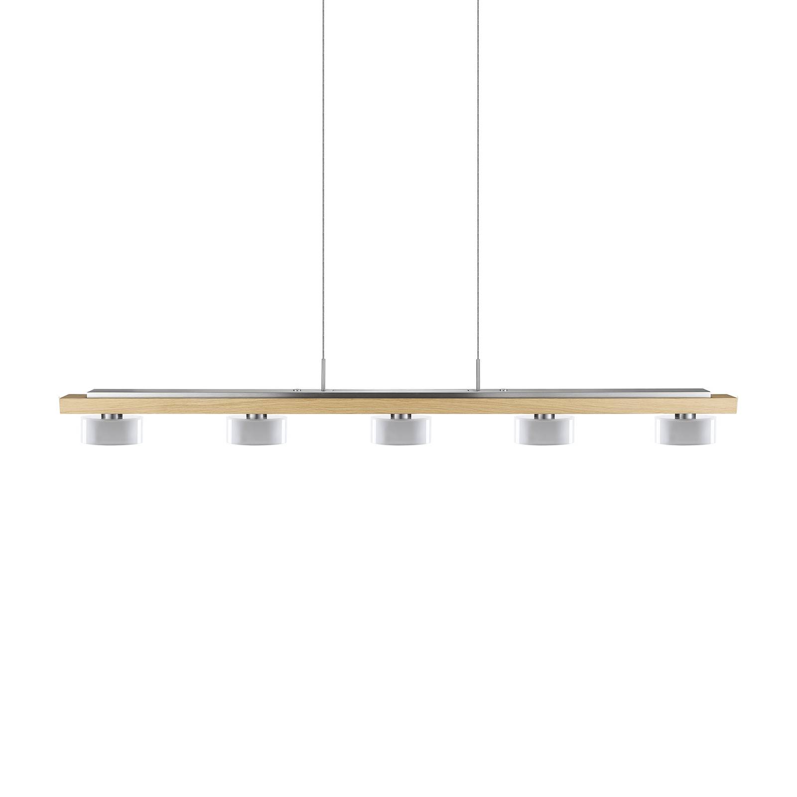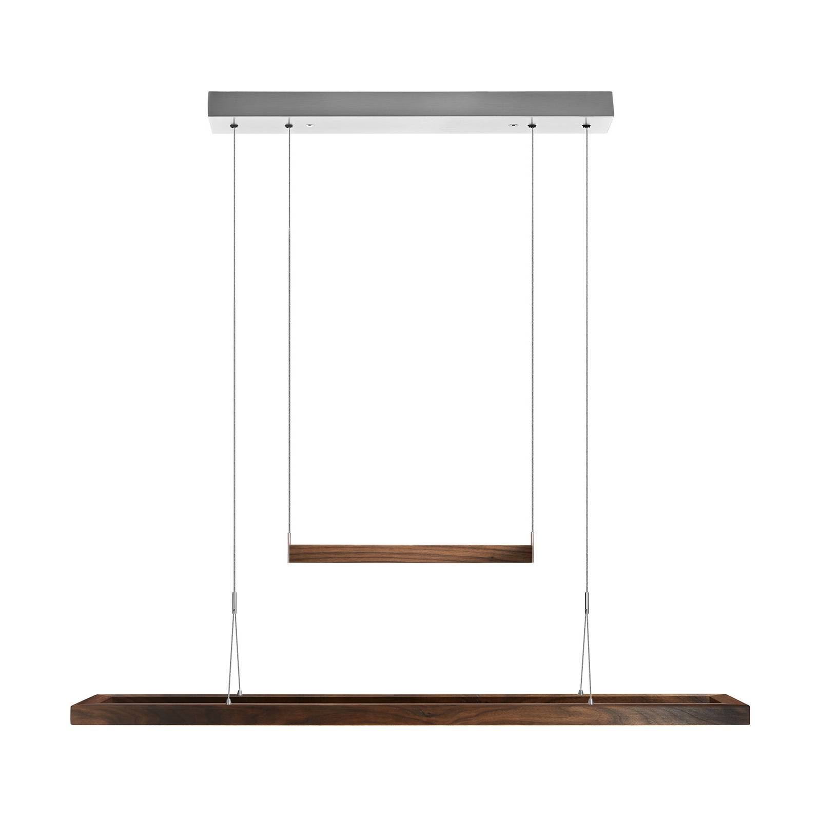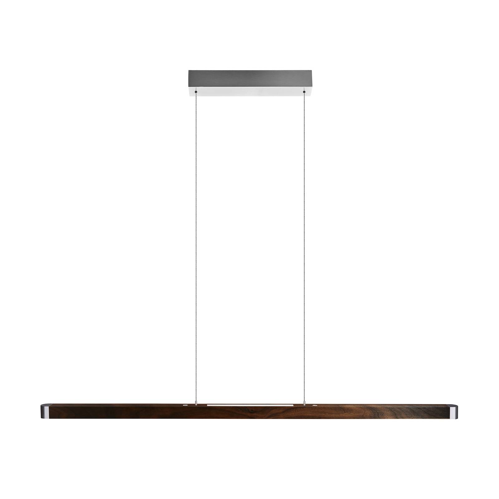 HerzBlut Novelie LED závěsné světlo, ořech olej, Obývací pokoj / jídelna, dřevo, nikl, akryl, 36.5W, P: 130 cm, L: 4 cm, K: 4cm