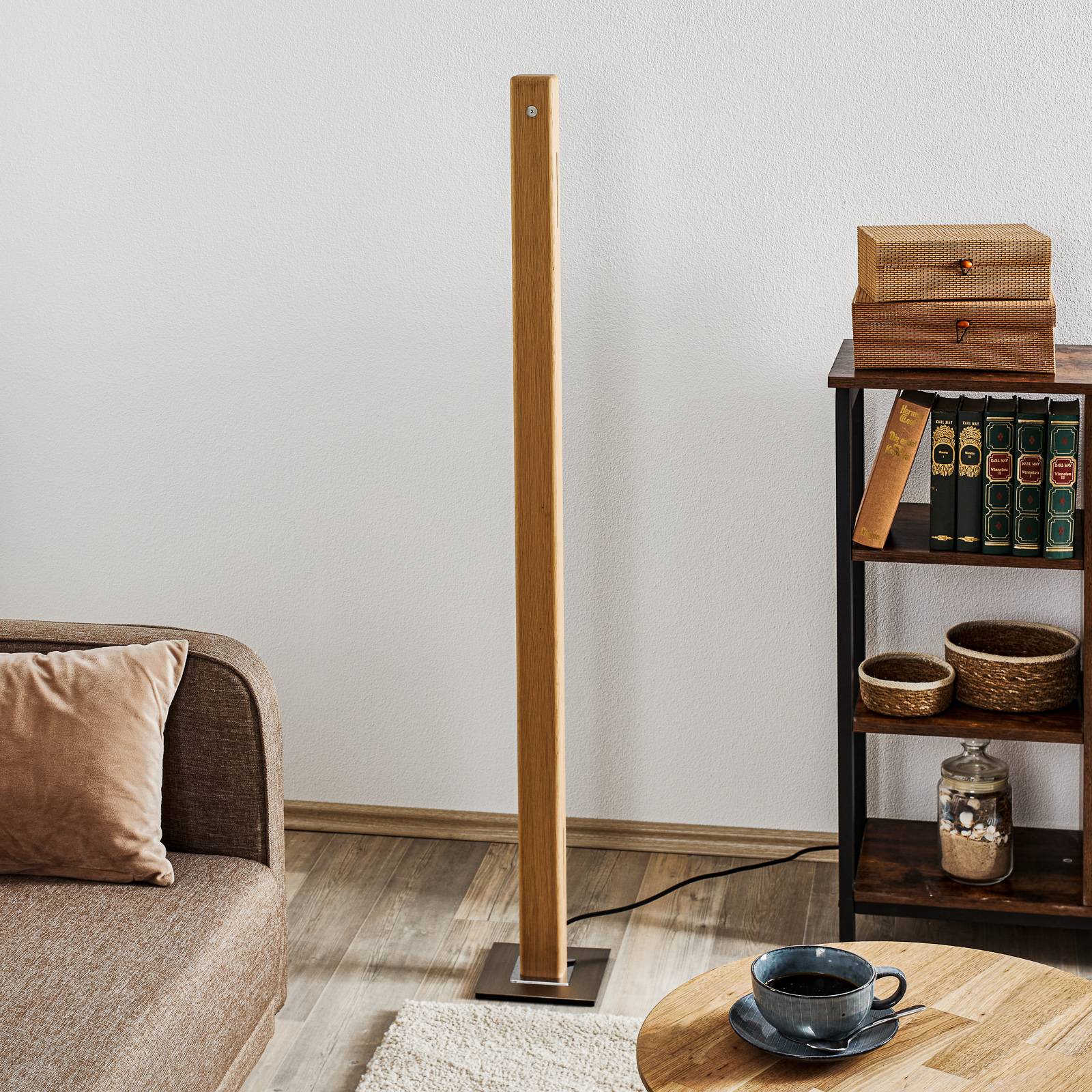 HerzBlut Leonora LED stojací lampa 122, 5cm dub, Obývací pokoj / jídelna, masivní dřevo, kov, plast, 34.6W, P: 5.9 cm, L: 5.9 cm, K: 122.5cm