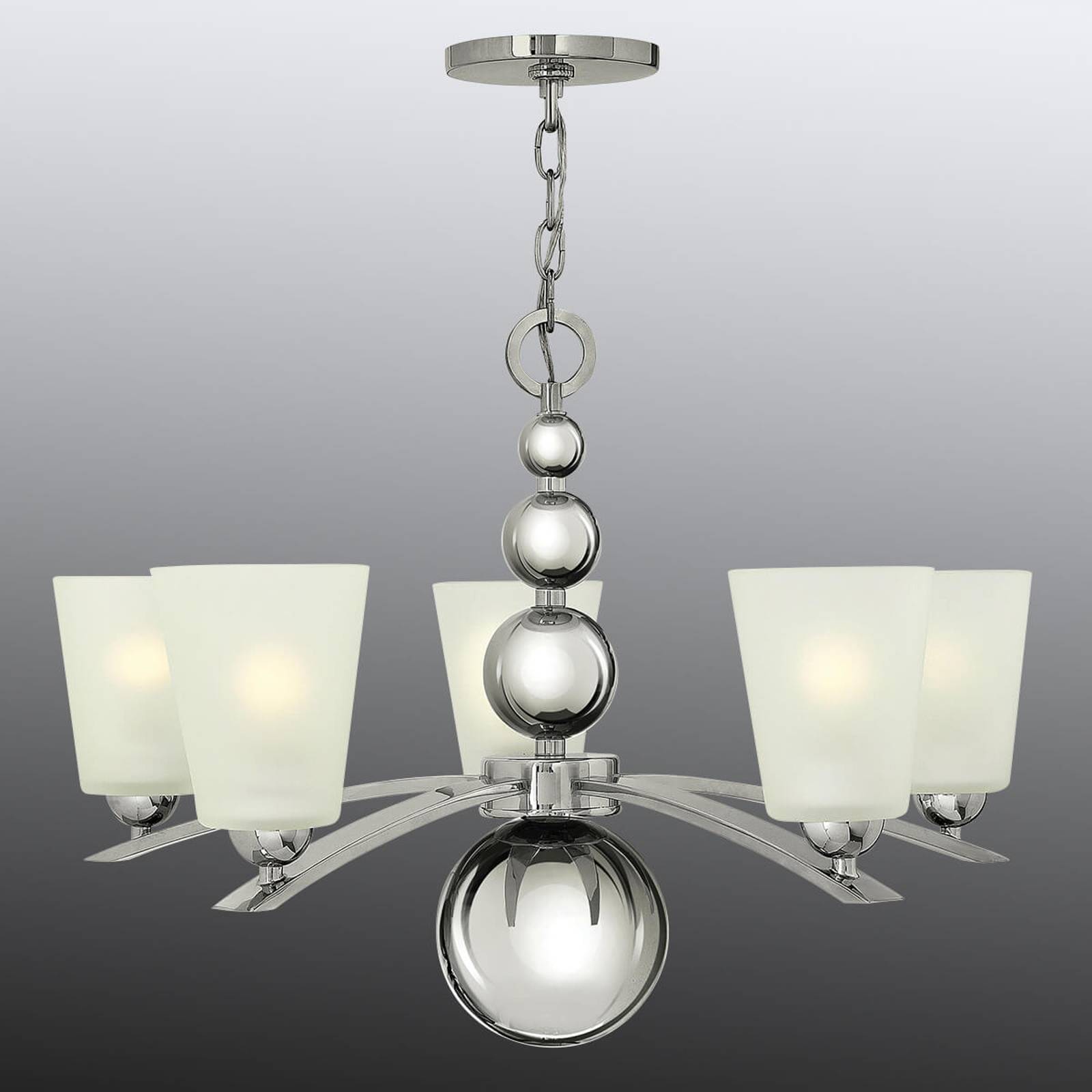 HINKLEY Lustr Zelda 5 zdrojů nikl, Obývací pokoj / jídelna, kov, leptané sklo, E27, 60W, K: 47.6cm