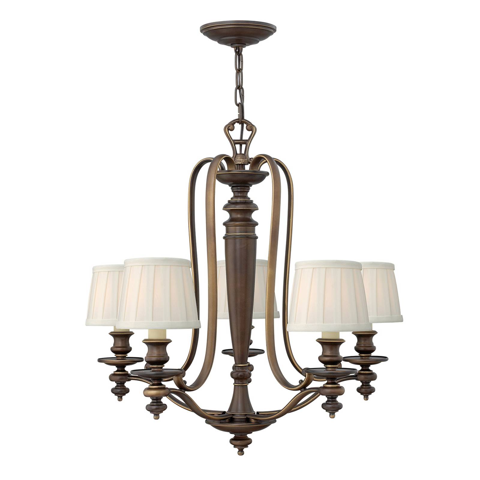 HINKLEY S plizovanými stínidly – lustr Dunhill 5, Obývací pokoj / jídelna, kov, sklo, textil, E14, 60W, K: 66cm