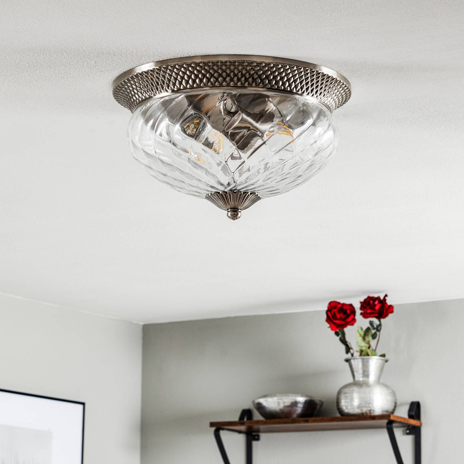 HINKLEY Stropní světlo Nest, struktura lístkového stříbra, Obývací pokoj / jídelna, kov, sklo, E27, 75W, K: 29.2cm