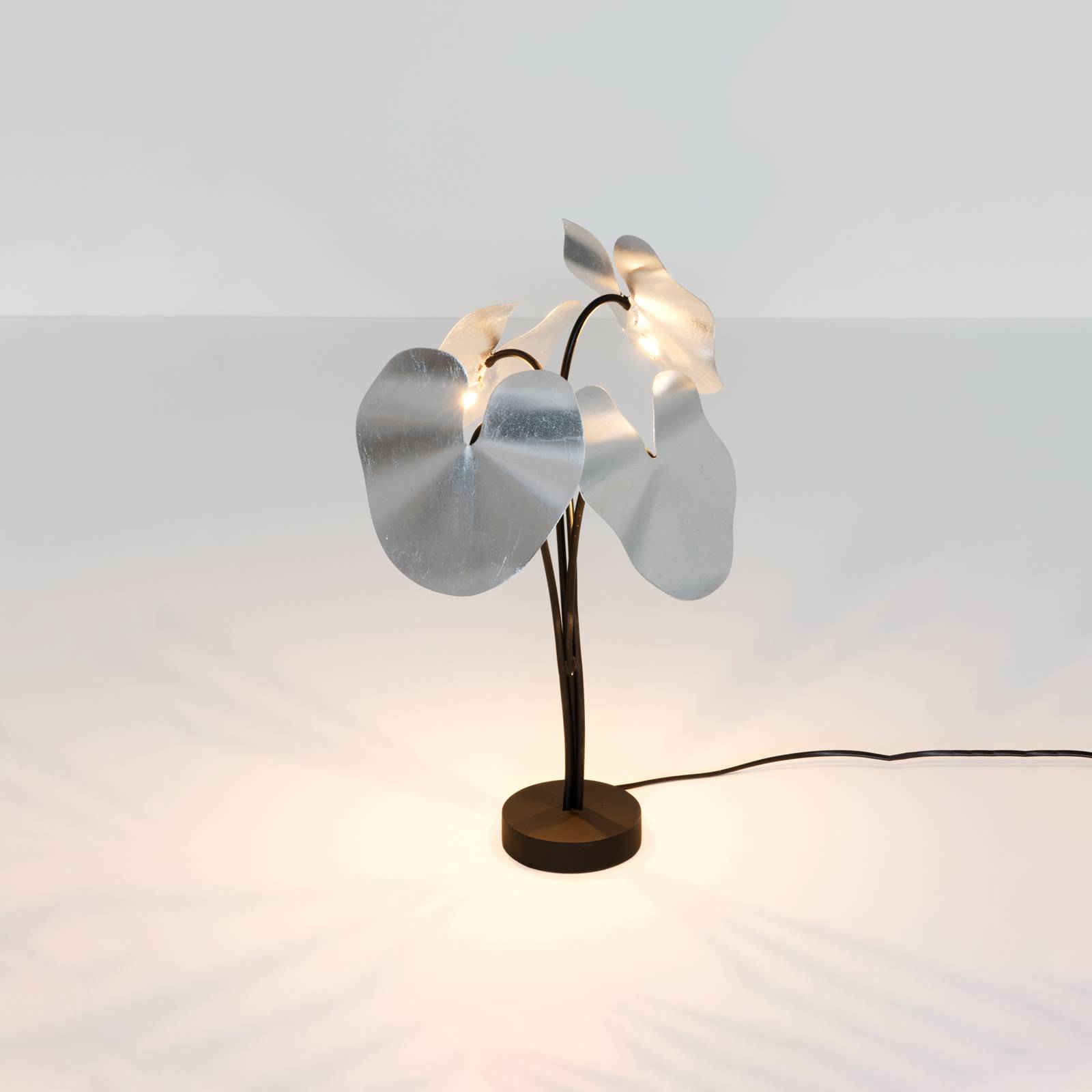 Holländer Stolní lampa Miro, stříbrná barva, výška 58 cm, železo/mosaz, Obývací pokoj / jídelna, Železo, mosaz, E27, 25W, P: 30 cm, K: 58cm