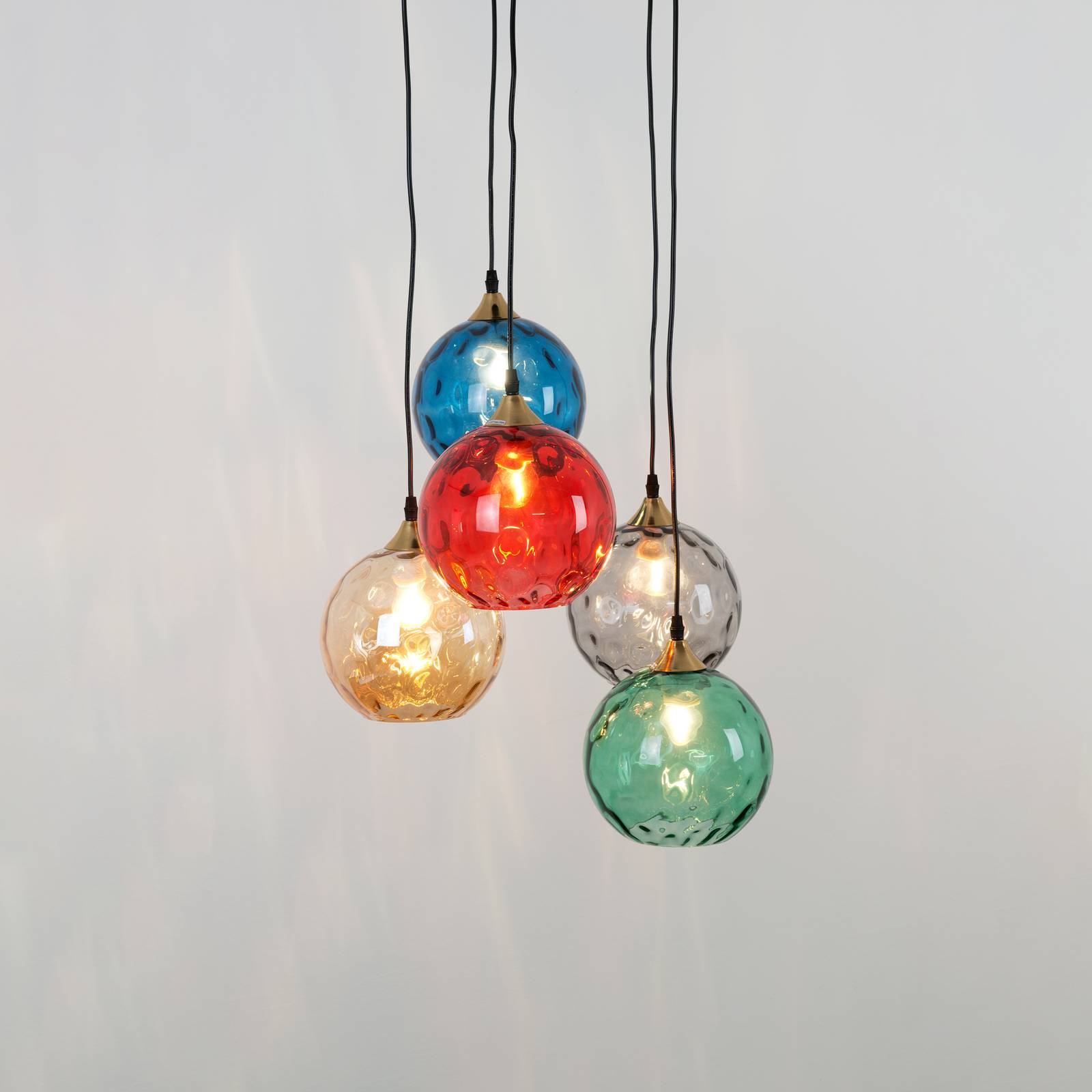 Holländer Závěsné světlo Milano, 5 stínidel z kouřového skla, Obývací pokoj / jídelna, sklo, kov, textilie, E27, 40W