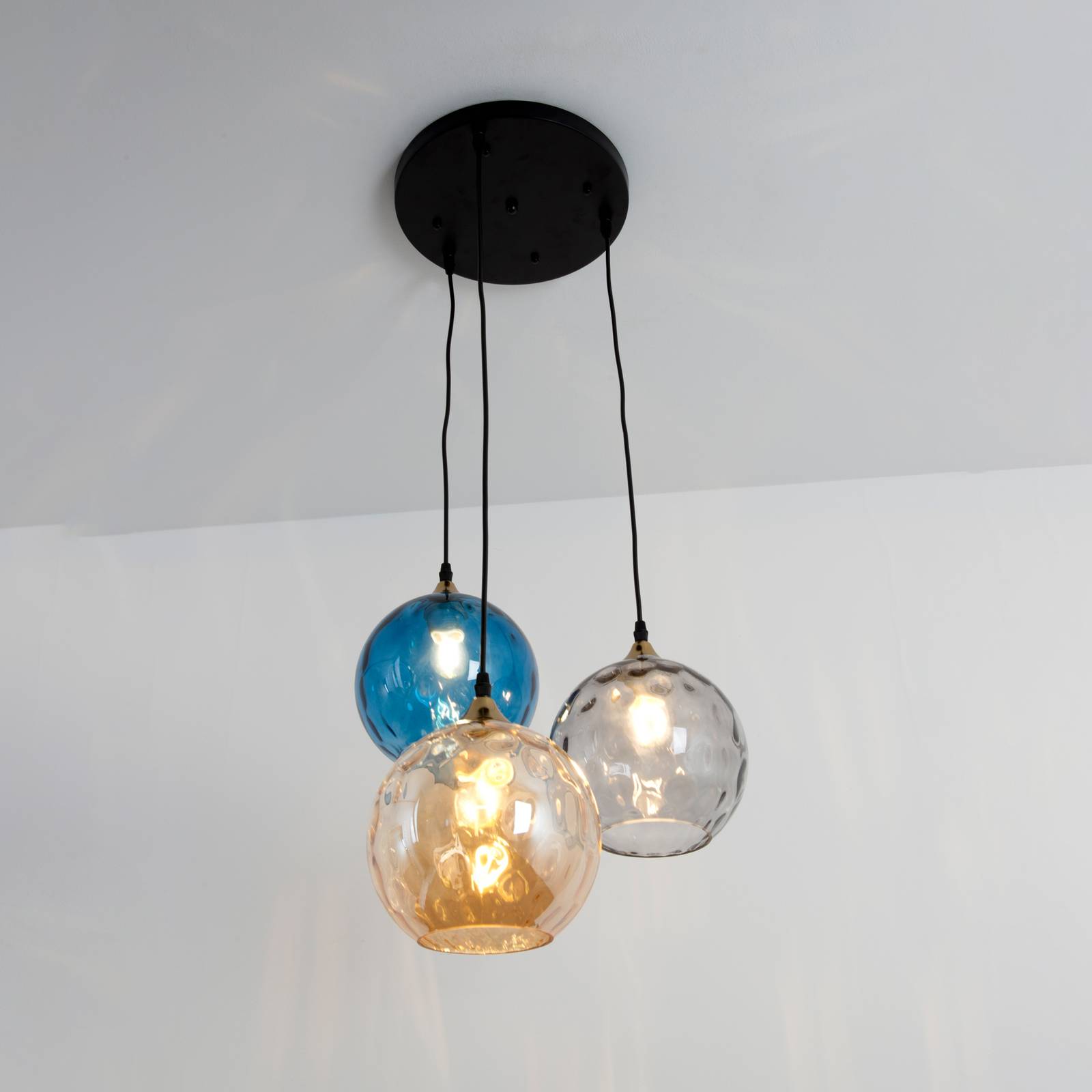 Holländer Závěsné světlo La Spezia 3zdroje jantar/modrá/šedá, Obývací pokoj / jídelna, sklo, kov, textilie, E27, 40W