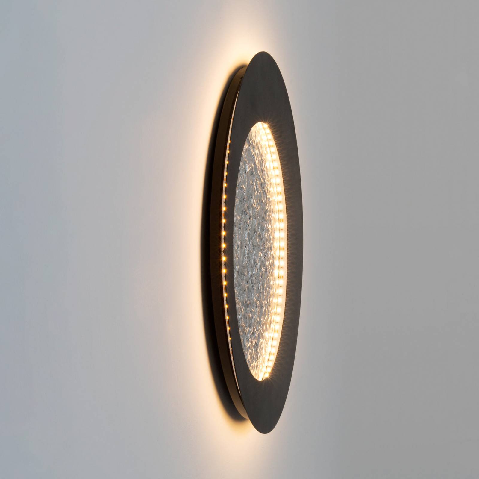 Holländer LED nástěnné svítidlo Luna, hnědočernostříbrná, Ø 120 cm, železo, Obývací pokoj / jídelna, Iron, 29W