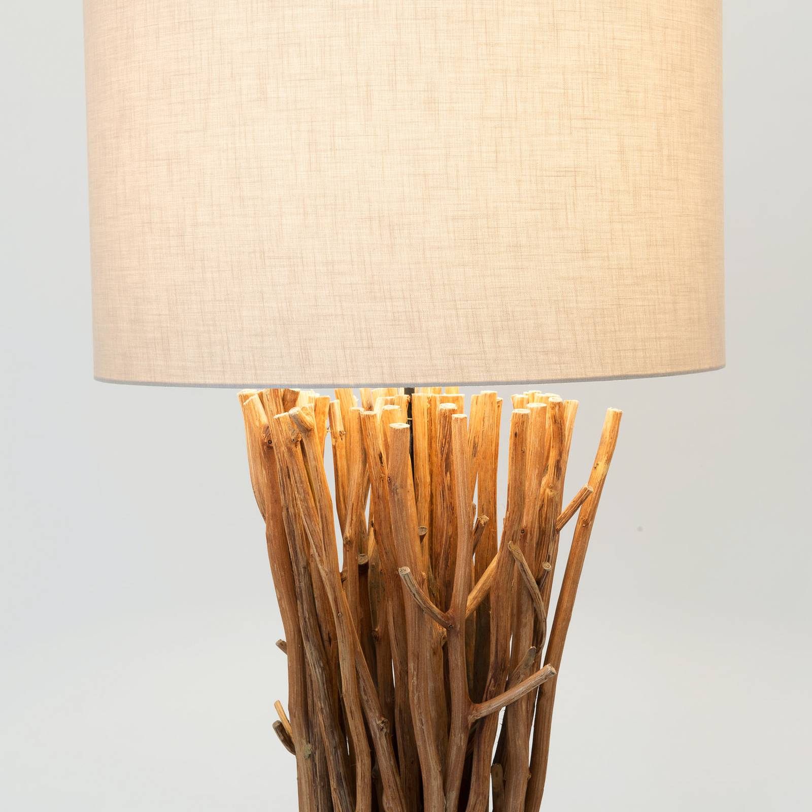 Holländer Stojací lampa Palmaria, barva dřeva/béžová, výška 177 cm, dřevo, Obývací pokoj / jídelna, Dřevo, len, kov, E27, 25W, K: 177cm
