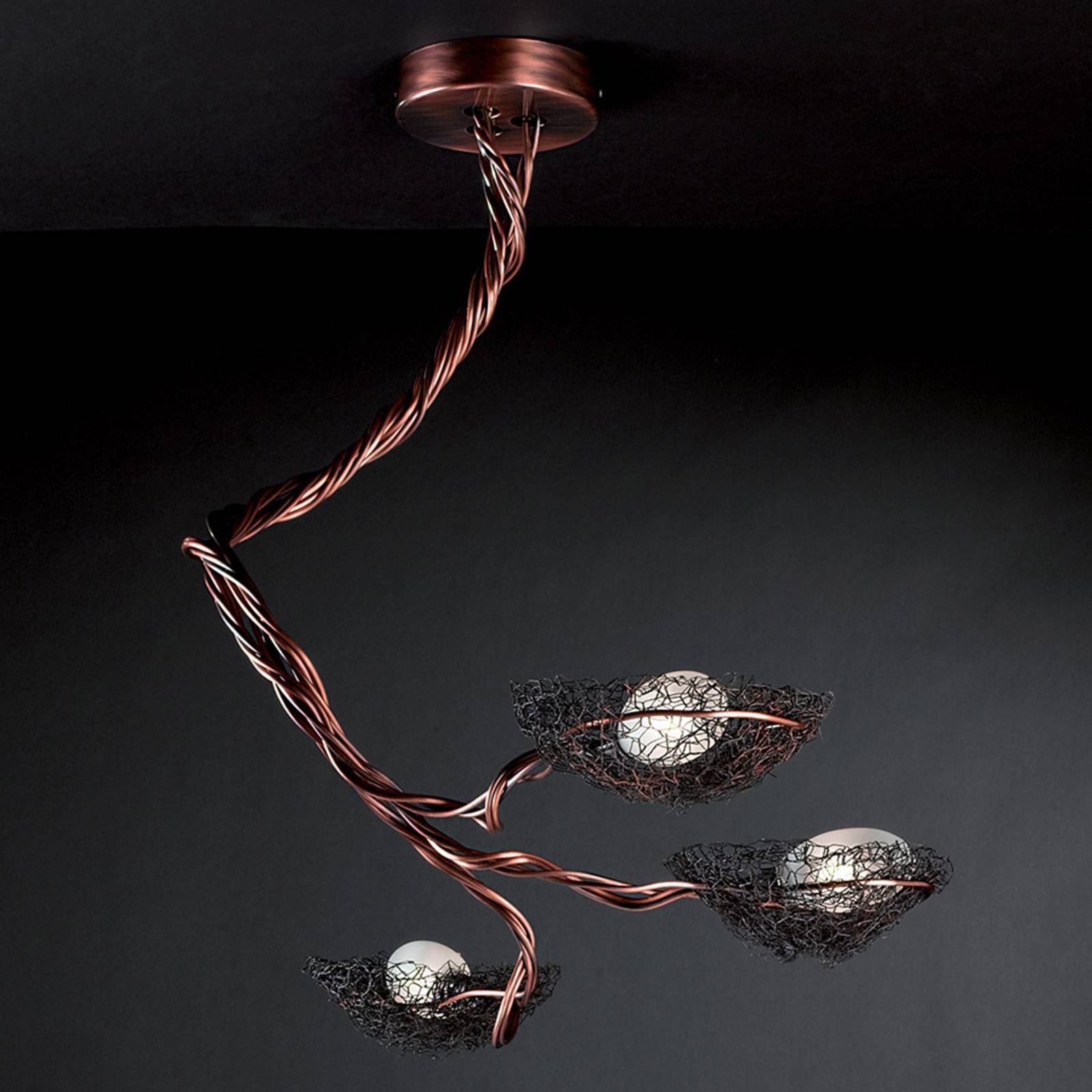 ICONE Nido – třísvítidlové závěsné svítidlo, měď, Obývací pokoj / jídelna, Kov, sklo, G9, 60W