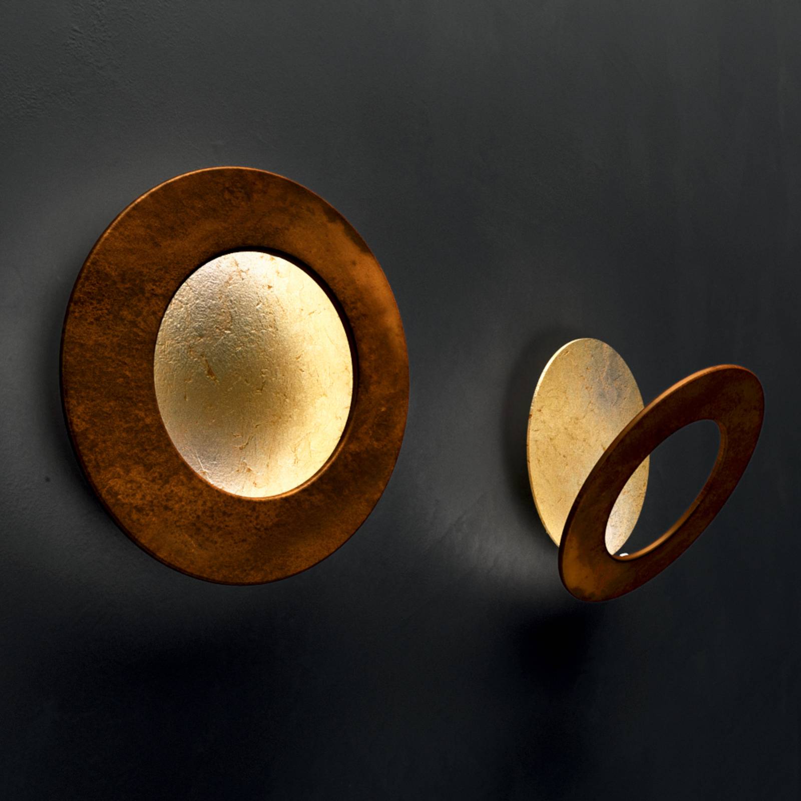 ICONE Vera LED nástěnné svítidlo 930 Ø26cm zlatá/rezavá, Obývací pokoj / jídelna, Hliník, 16.8W