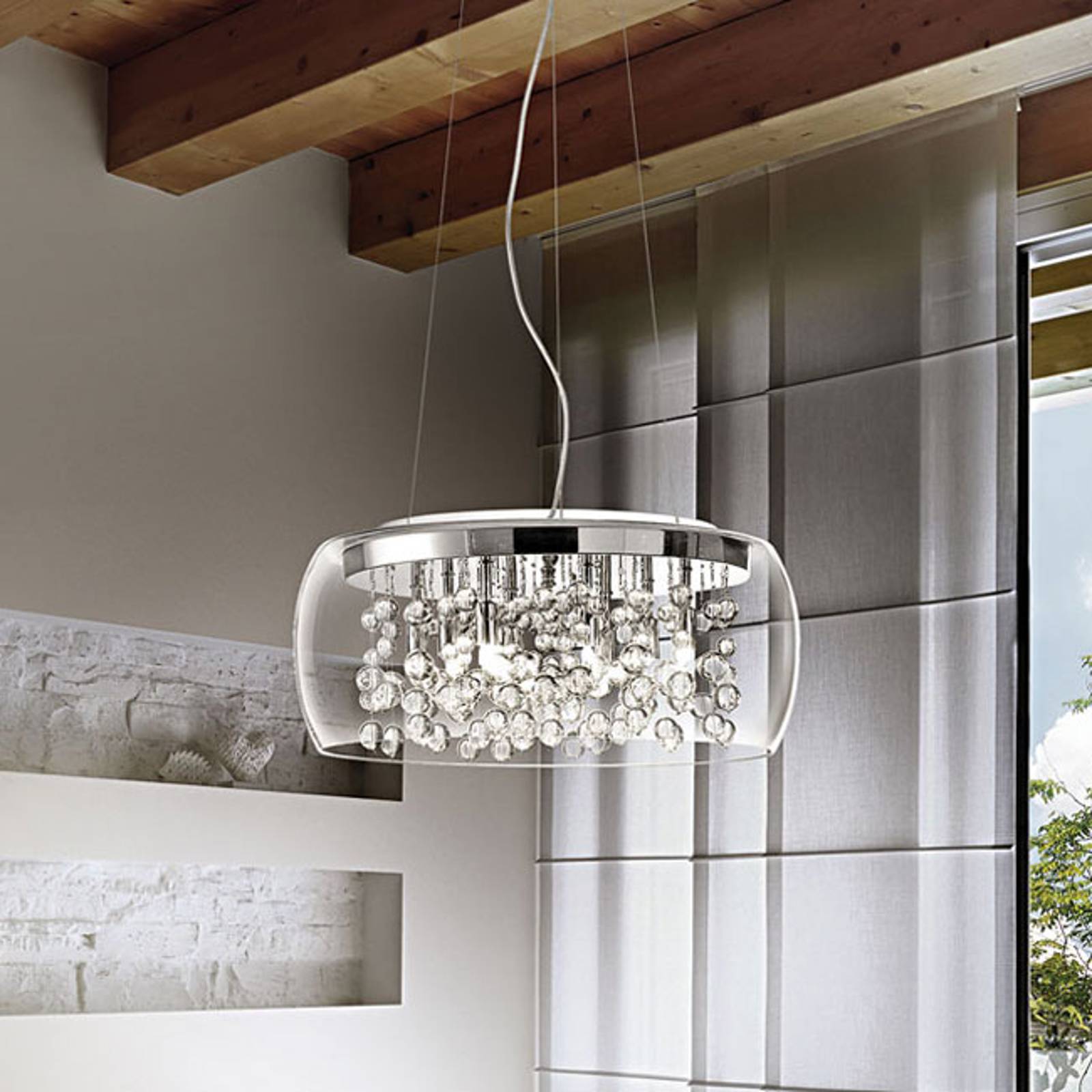 Ideallux Závěsné světlo Audi z průhledného skla, Ø 50 cm, Obývací pokoj / jídelna, sklo, kov, G9, 40W, K: 20cm