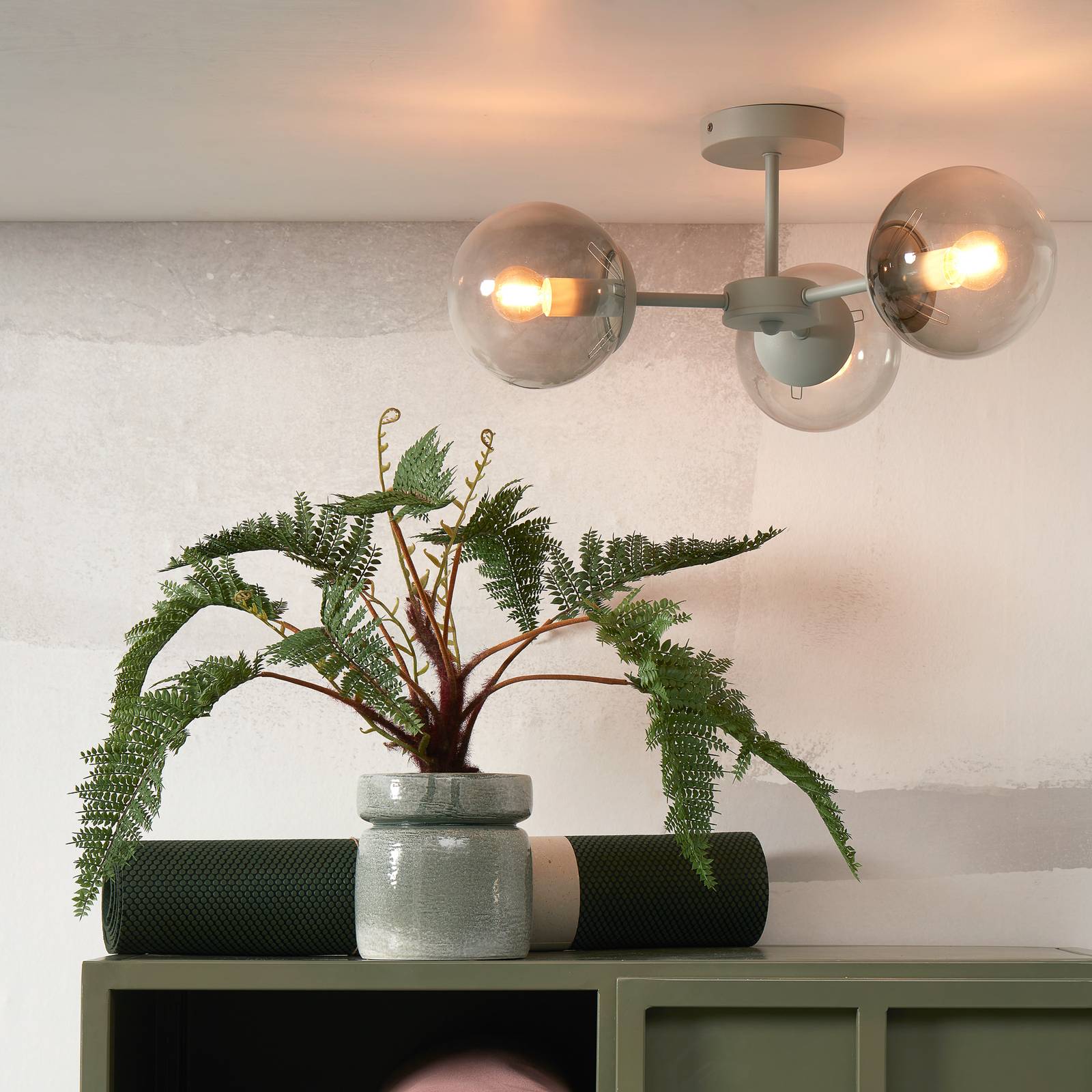 It’s about RoMi Jedná se o stropní světlo Aspen, světle šedé, 3 světla, Chodba, Sklo, železo, E14, 6W, K: 22.5cm