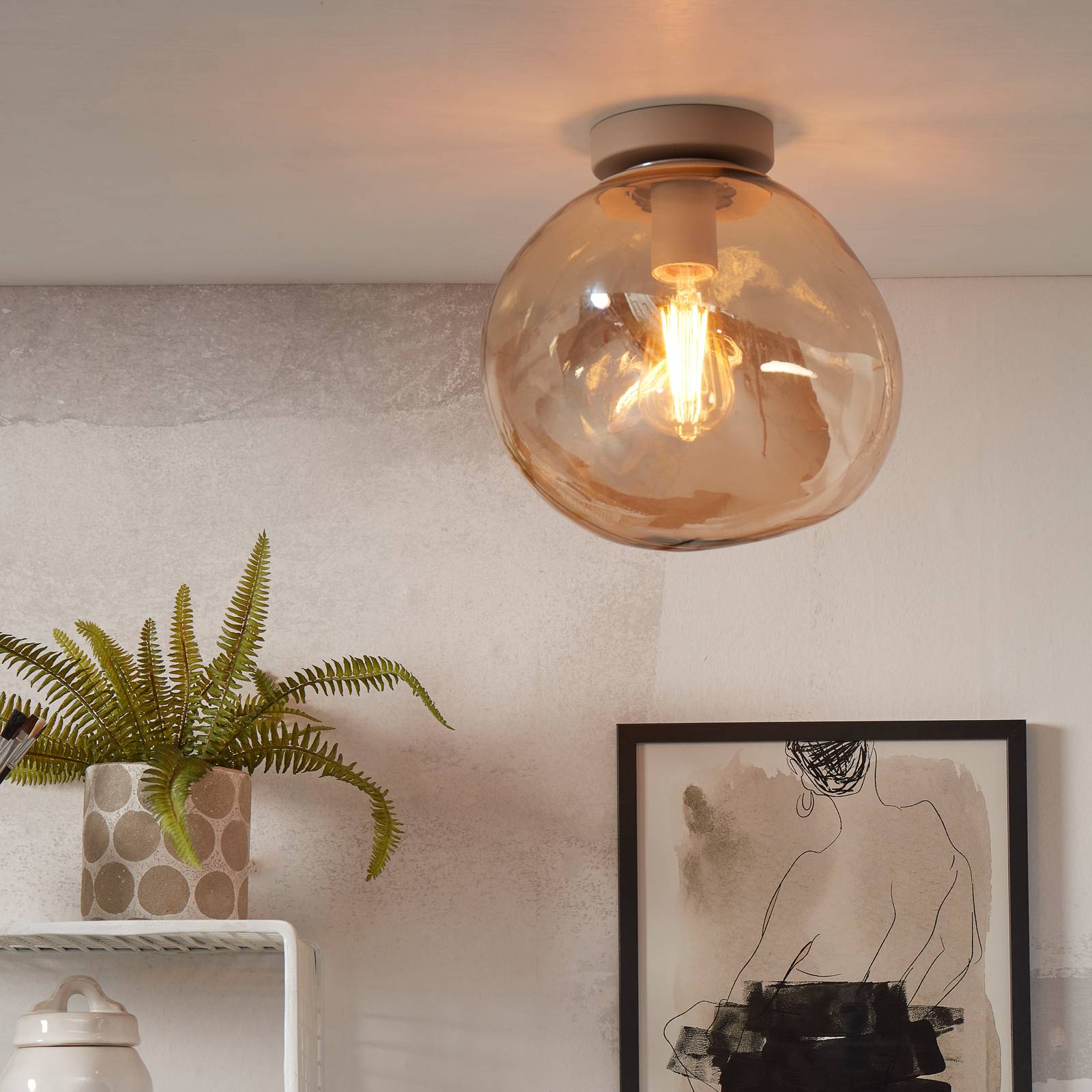 It’s about RoMi Jedná se o stropní svítidlo Helsinki, jantarová barva, Chodba, Sklo, železo, E27, 6W, K: 28cm