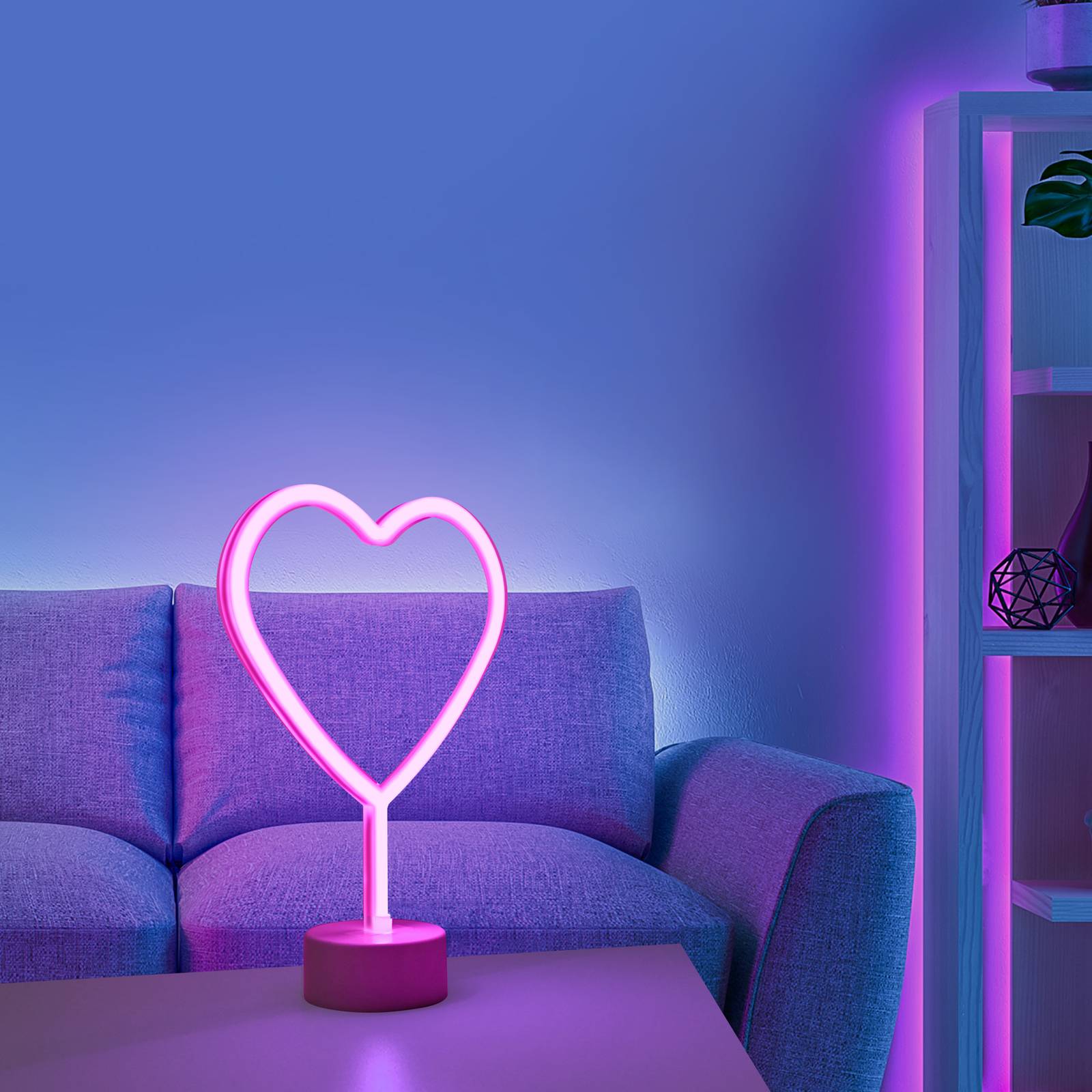 JUST LIGHT. LED stolní lampa Neon Herz, na baterii, Obývací pokoj / jídelna, plast PVC, plast PS, 1W, L: 20 cm, K: 30cm