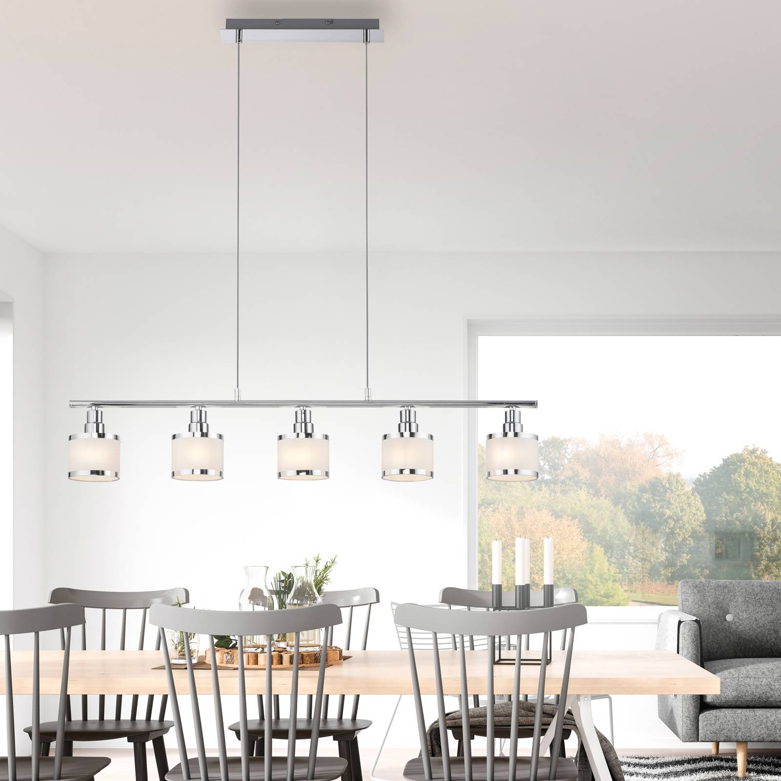 JUST LIGHT. Závěsné svítidlo Accor, verze s pěti světly, Obývací pokoj / jídelna, Železo, PVC, textil, E14, 25W, P: 90 cm, L: 10 cm