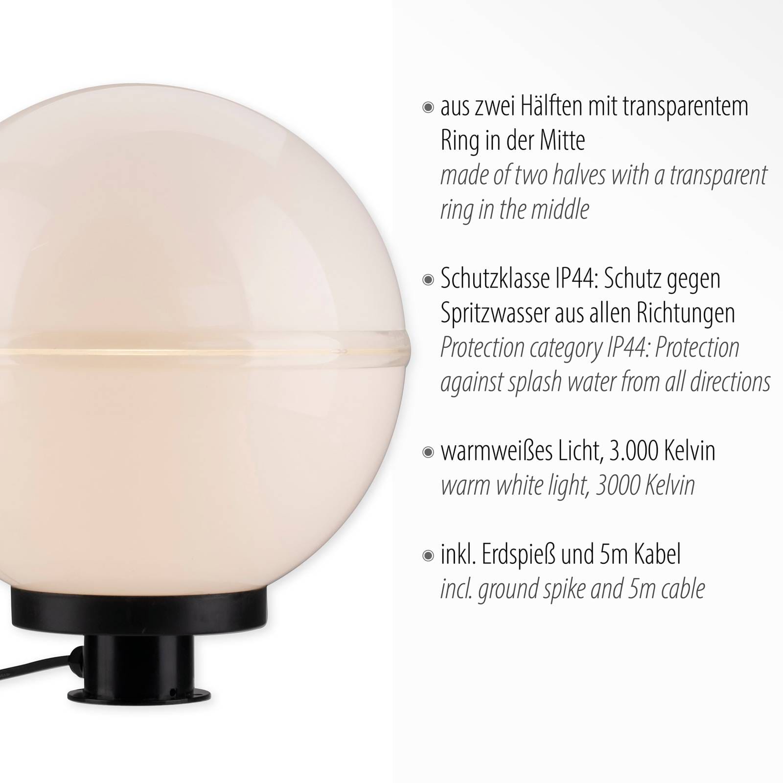 JUST LIGHT. Venkovní dekorativní svítidlo Hemis se zemním bodcem, Ø 30 cm, plast, E27, 40W, K: 61cm