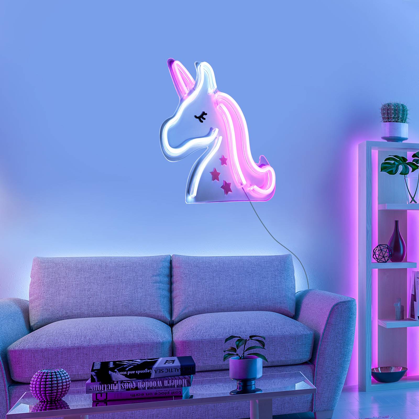 JUST LIGHT. LED nástěnné svítidlo Neon Unicorn, USB, Obývací pokoj / jídelna, plast PVC, plast PS, 6.5W, L: 33 cm, K: 33cm