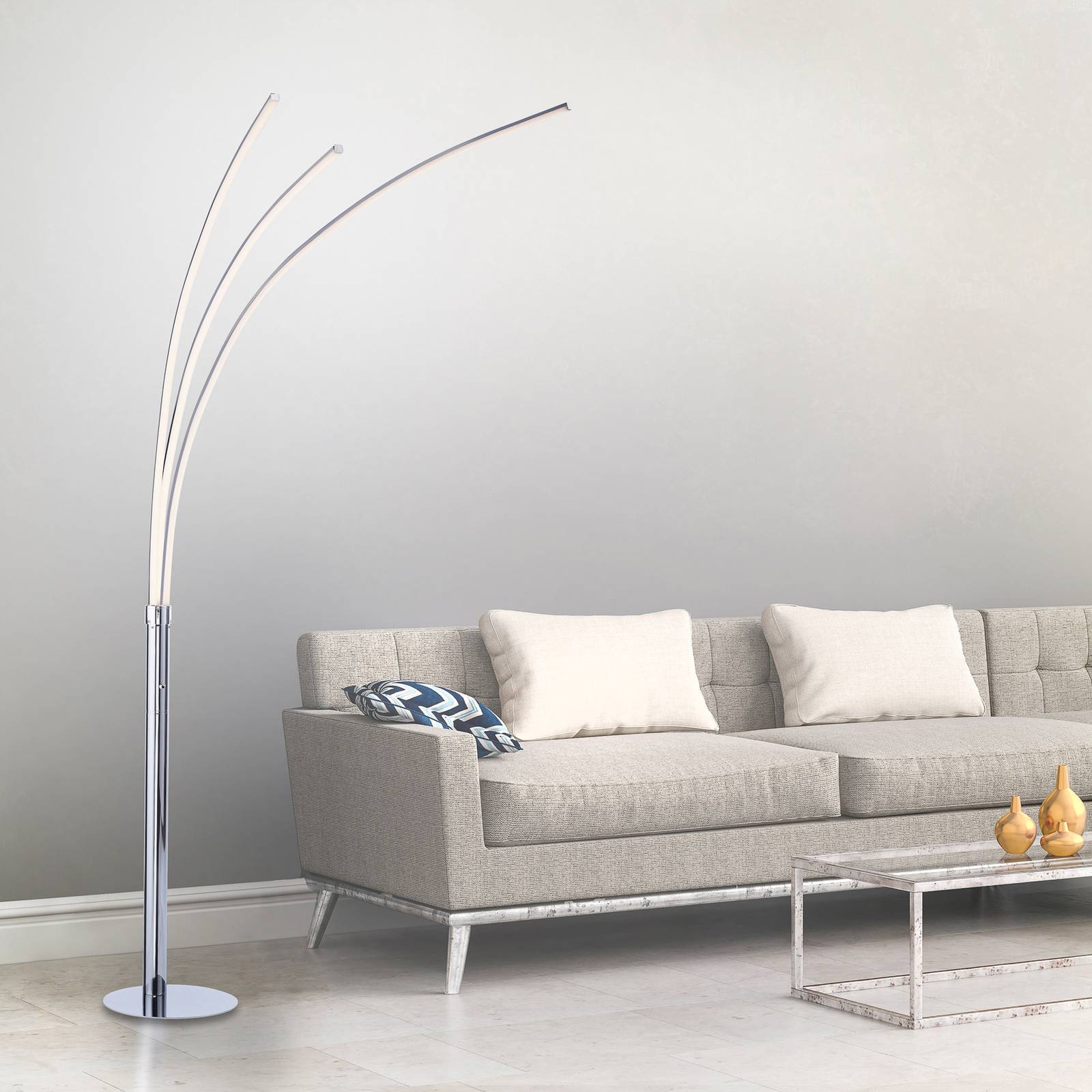 JUST LIGHT. Stojací lampa LED Maja, třísvítidlo, chrom, Obývací pokoj / jídelna, Železo, plast, K: 215cm