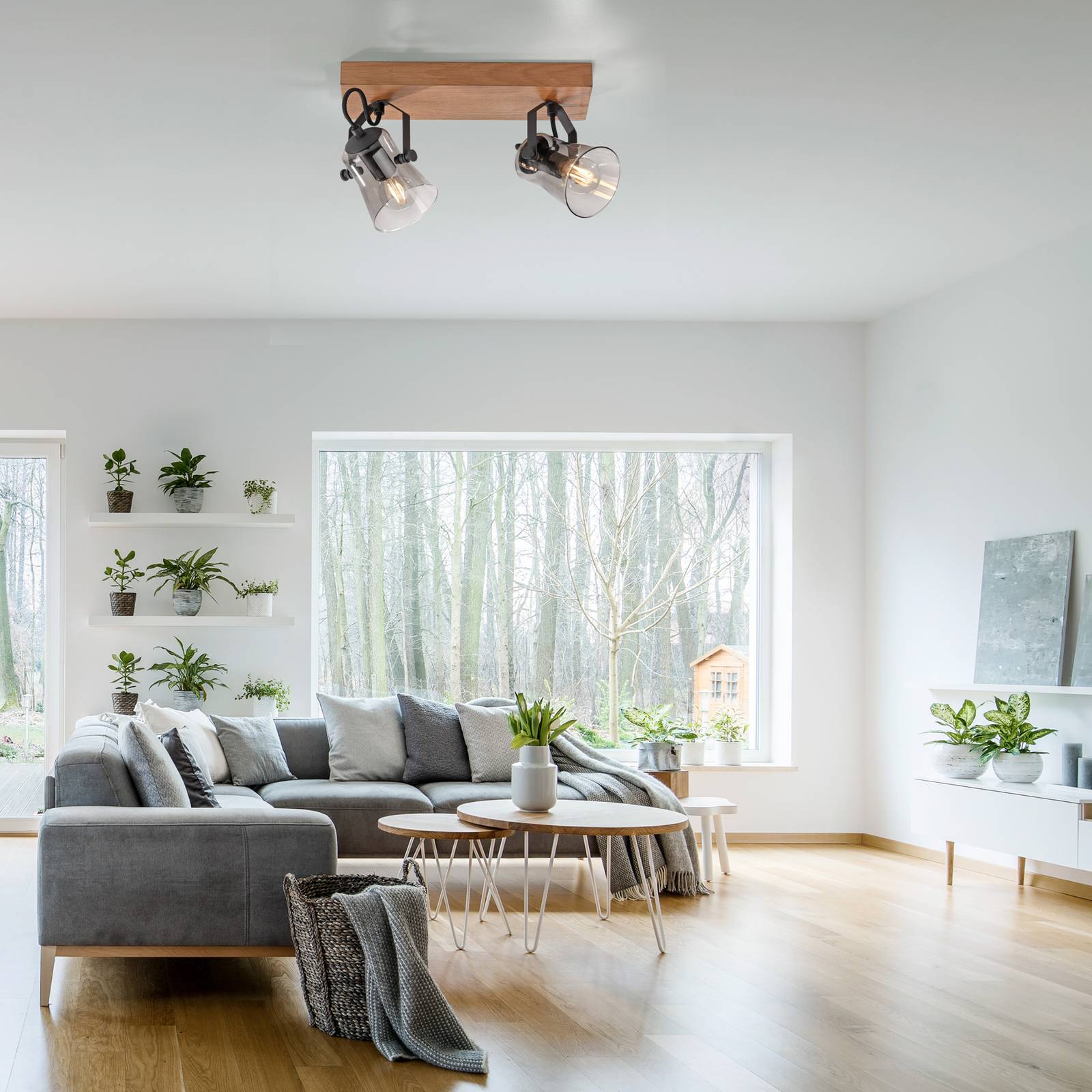 JUST LIGHT. Zelený stropní reflektor Langström, dvouhořákový, Obývací pokoj / jídelna, Dřevo, železo, sklo, E14, 10W, P: 38 cm, L: 18 cm, K: 21cm