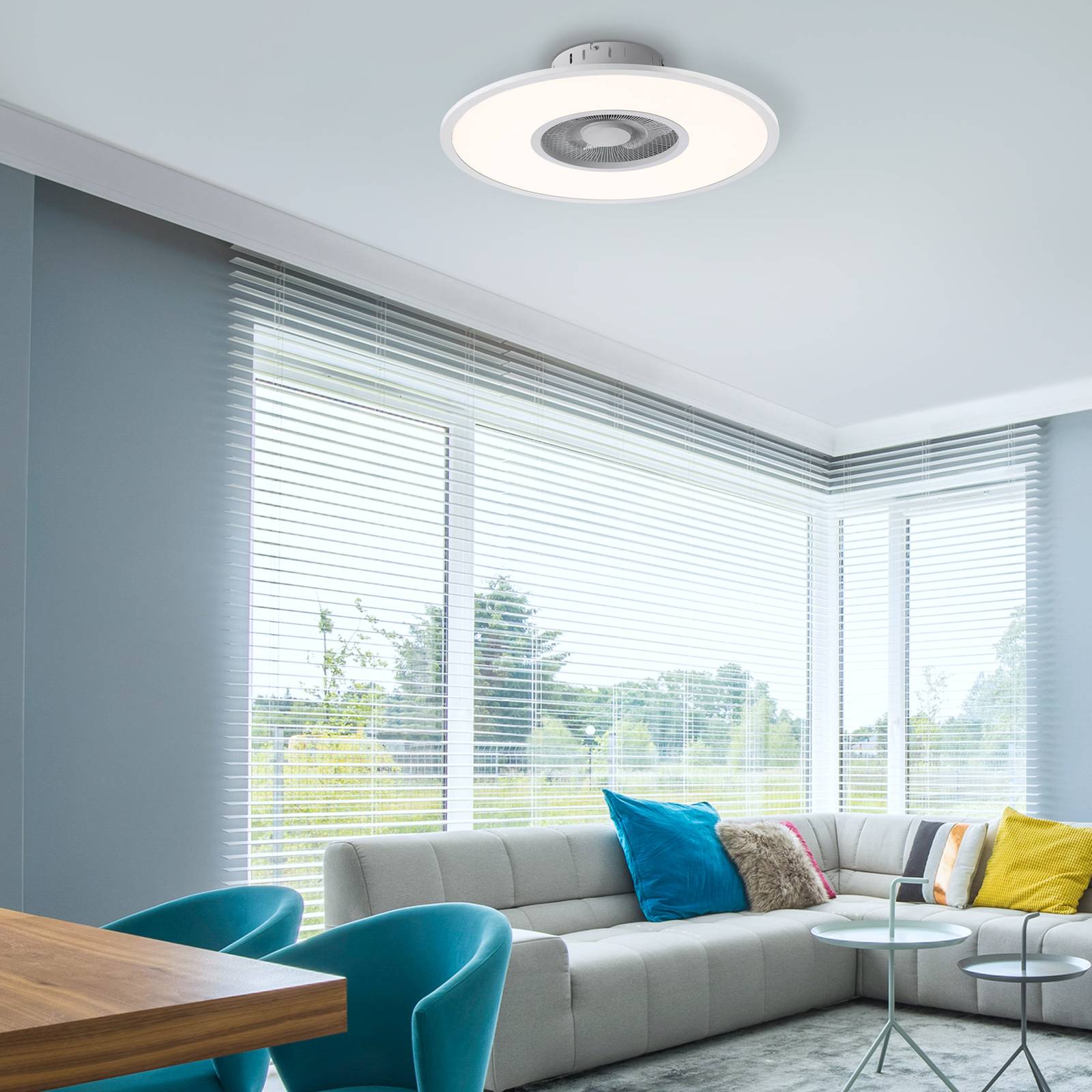 JUST LIGHT. LED stropní ventilátor Flat-Air, CCT, bílý, Ø 59, 5 cm, Obývací pokoj / jídelna, Železo, hliník, plast, 32W, K: 16.5cm