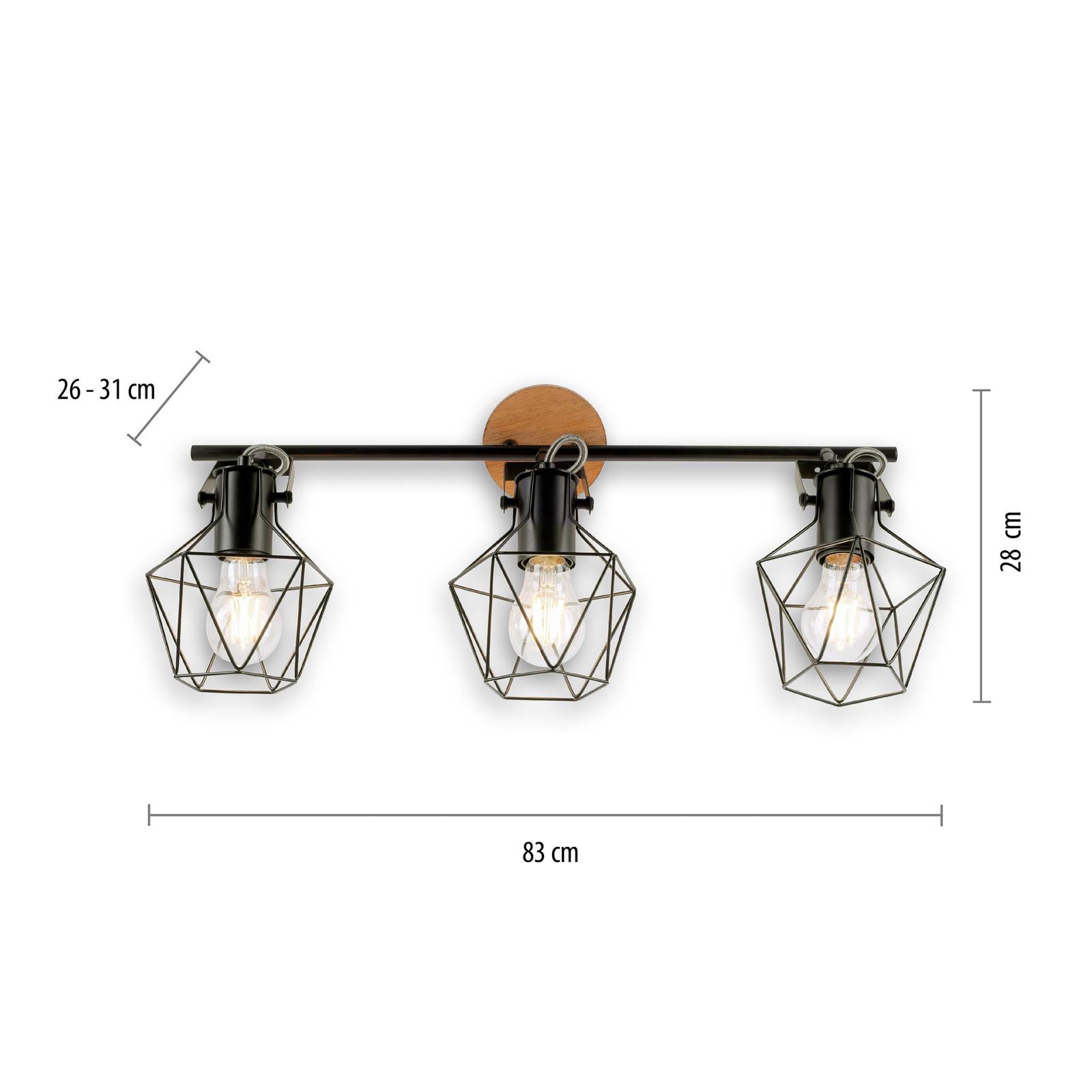 JUST LIGHT. Stropní svítidlo Jaro nastavitelné černá/dřevo 3 světla, Obývací pokoj / jídelna, Železo, dřevo, E27, 60W, P: 83 cm, L: 28 cm, K: 31cm