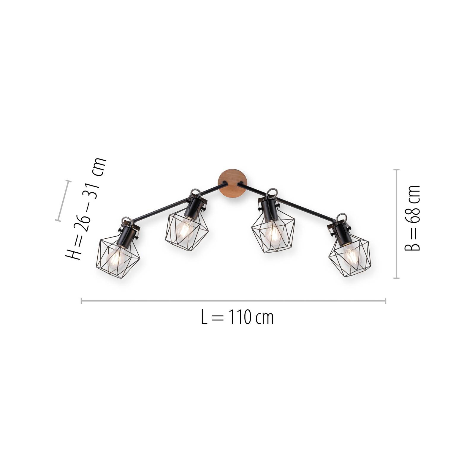 JUST LIGHT. Stropní svítidlo Jaro nastavitelné černá/dřevo 4 světla, Obývací pokoj / jídelna, Železo, dřevo, E27, 60W, P: 110 cm, L: 68 cm, K: 31cm