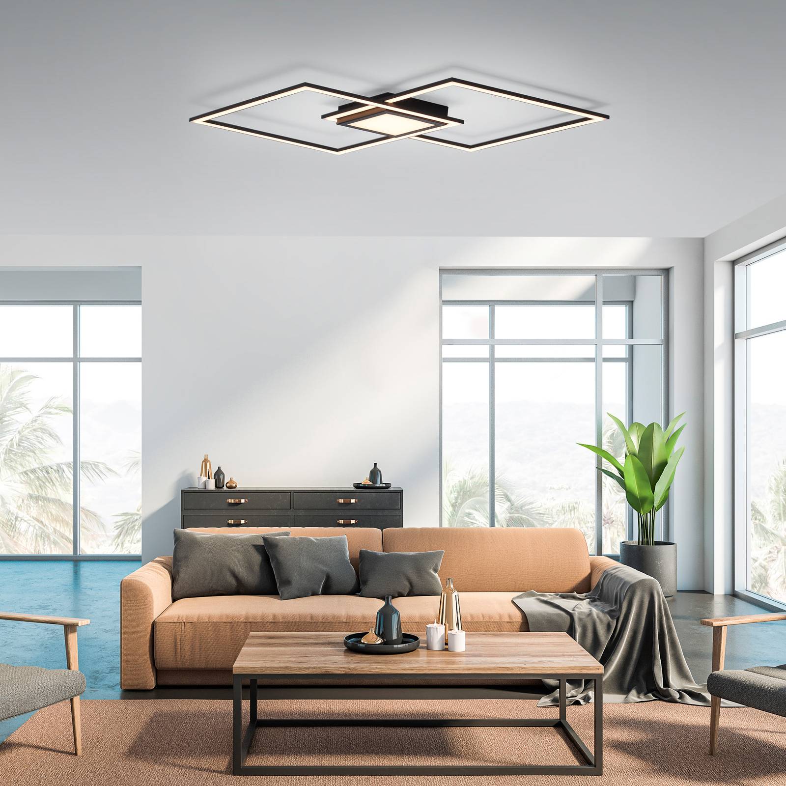 JUST LIGHT. LED stropní svítidlo Vertigo, CCT, 90×60 cm, černá, Obývací pokoj / jídelna, plast, železo, 45W, P: 90.5 cm, L: 60.5 cm, K: 10.5cm