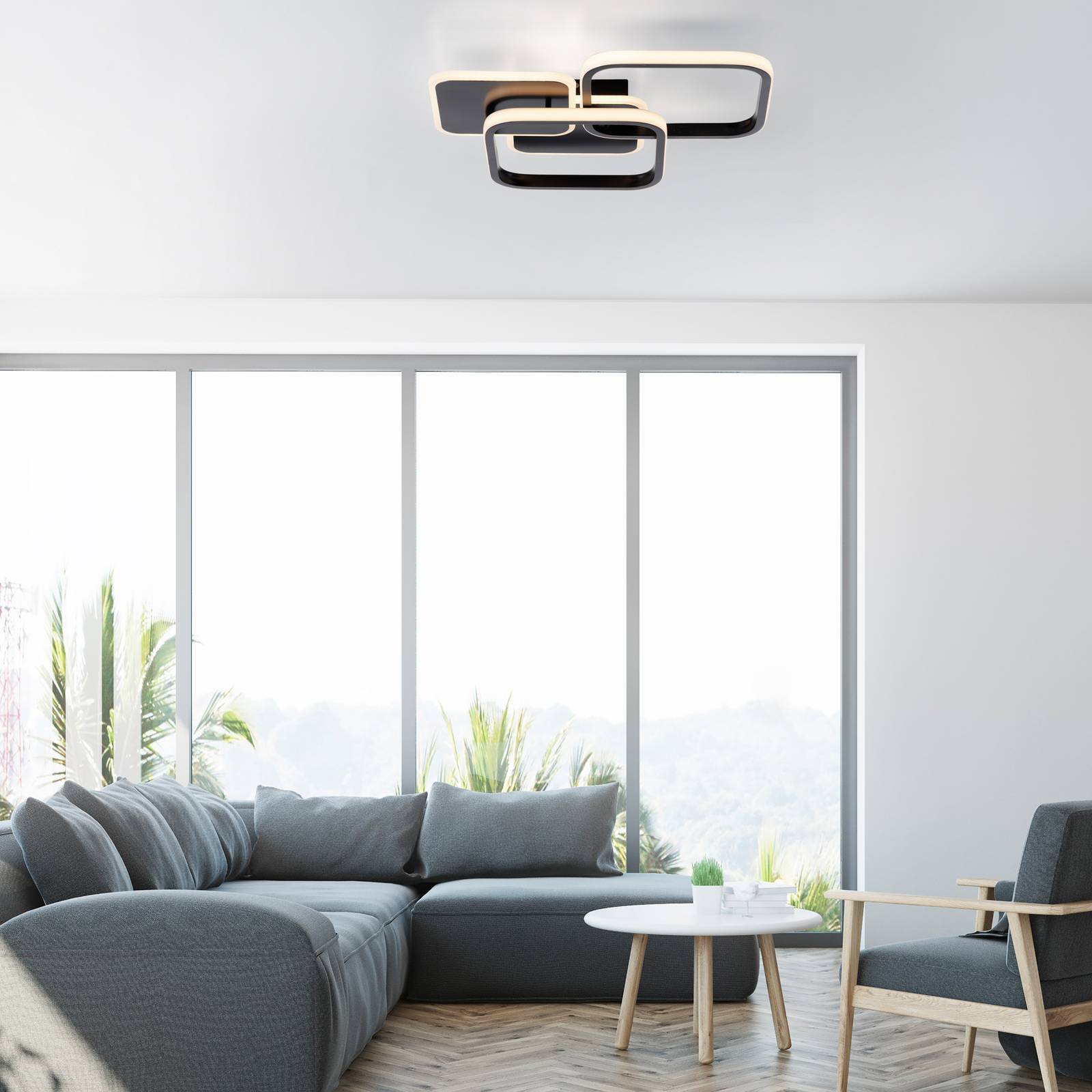 JUST LIGHT. Stropní svítidlo LED Sevent, hranaté, 3 000 K, černé, Obývací pokoj / jídelna, železo, hliník, nerezová ocel, plast (PVC), plast (PMMA), 36W, P: 46 cm, L: 39.4 cm, K: 8.7cm