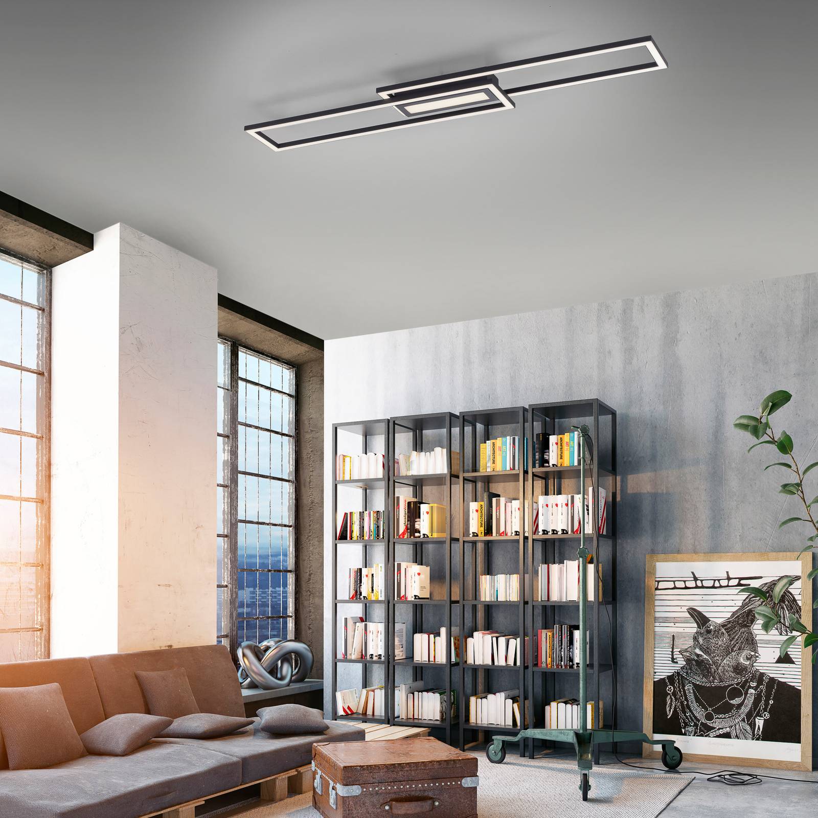 JUST LIGHT. LED stropní svítidlo Asmin, CCT, černé, 95×17, 5cm, Obývací pokoj / jídelna, Hliník, železo, plast, 45W, P: 95 cm, L: 17.5 cm, K: 5cm