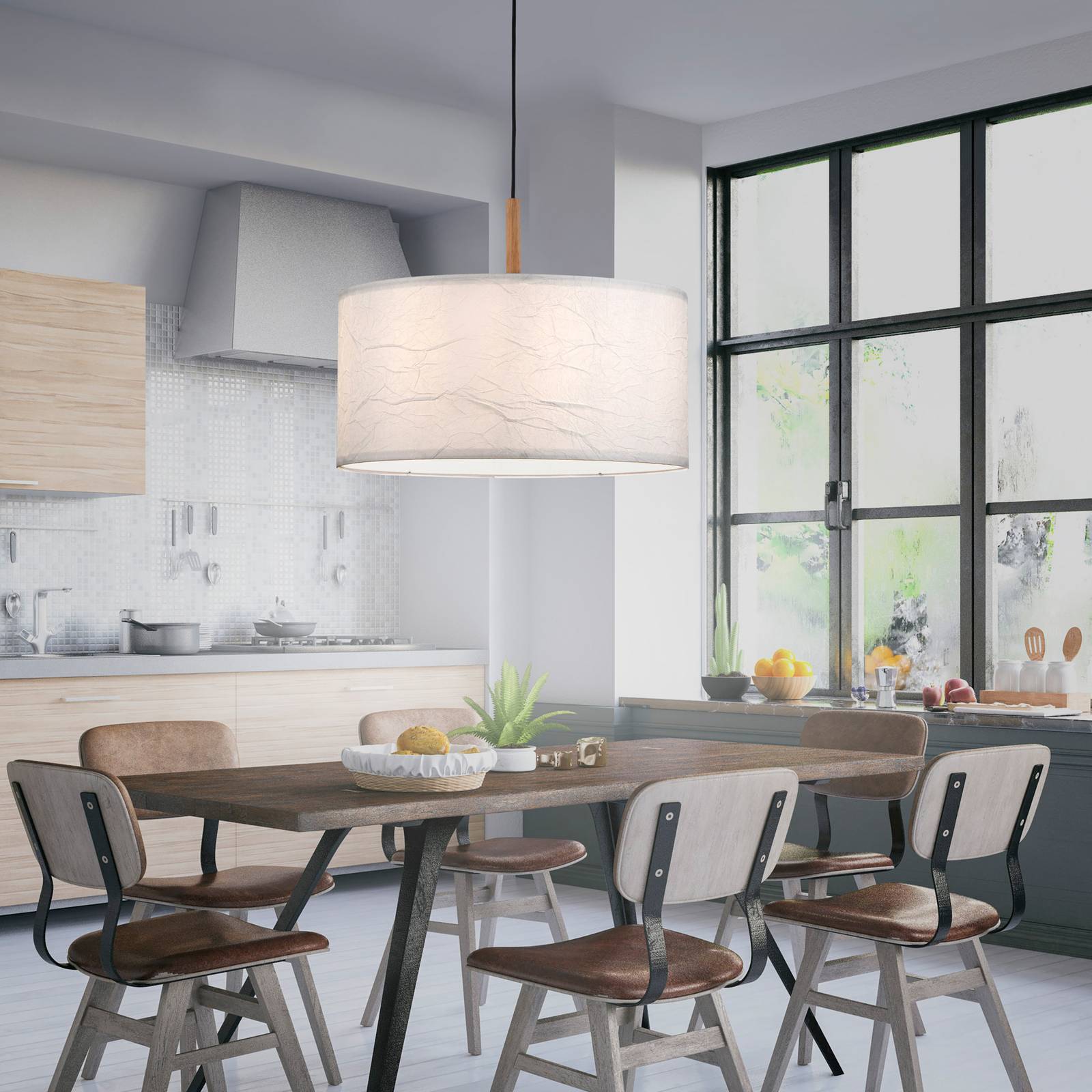 JUST LIGHT. Zelené závěsné svítidlo Sofie, papírové stínidlo, jedno světlo, Obývací pokoj / jídelna, Železo, textil, dubové dřevo, papír, E27, 10W