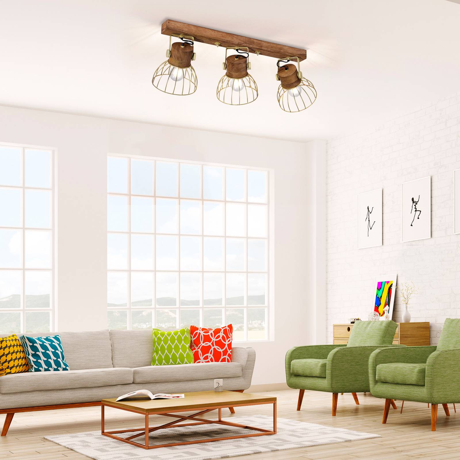 JUST LIGHT. Stropní svítidlo Alami mangové dřevo mosaz matná 3 světla., Obývací pokoj / jídelna, Mangové dřevo, železo, plast, E27, 25W, P: 76 cm, L: 31 cm, K: 28cm